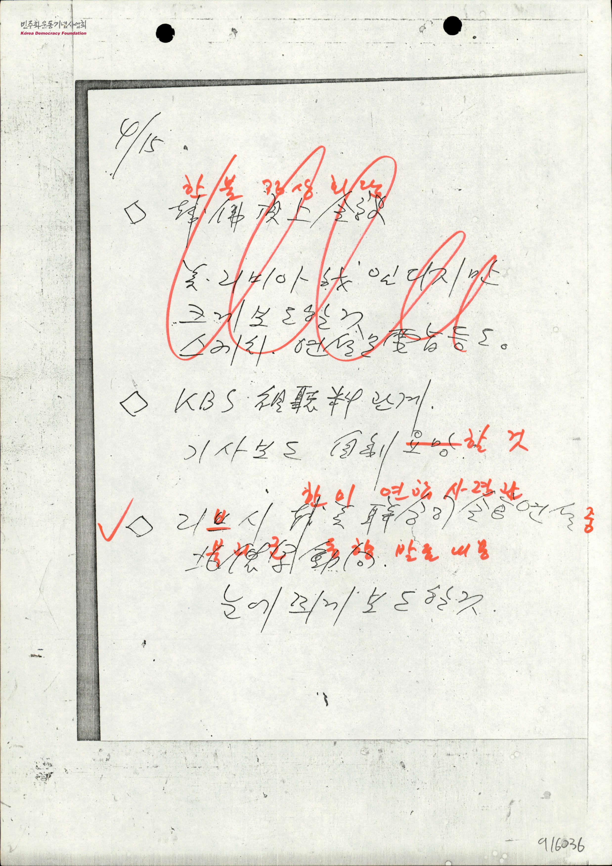 - KBS 시청료 거부운동 관계기사 자제, 리브시 한미연합사령관의 연설에서 언급된 북한군동향 발표 내용에 관한 보도지침