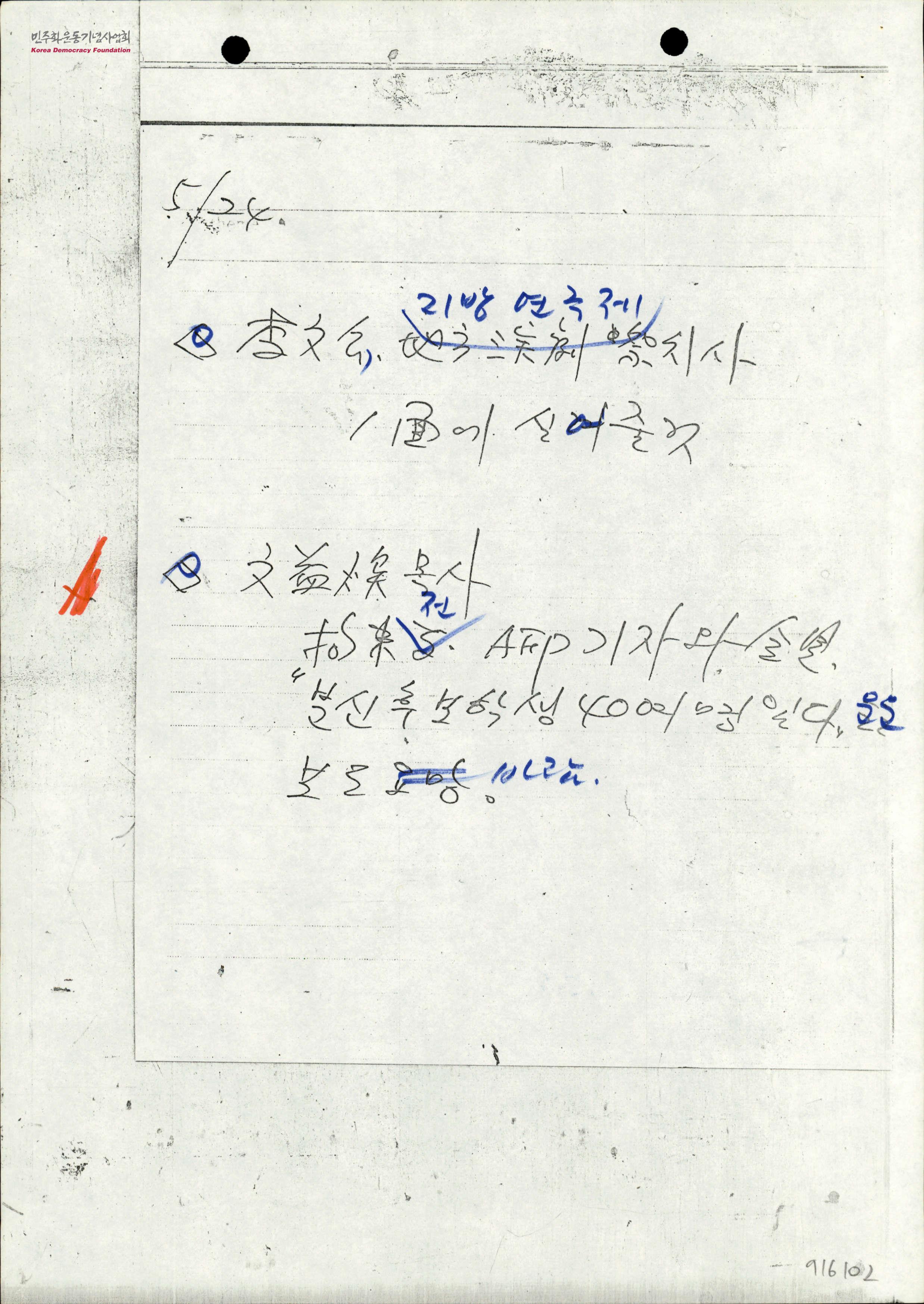 - 이원홍 문공의 지방 연극제 치사 1면 배치, 문익환 목사, 구속전에 AFP기자와 회견한 내용 『분신후보 학생 40여명 있다』는 발언 보도하라는 보도지침