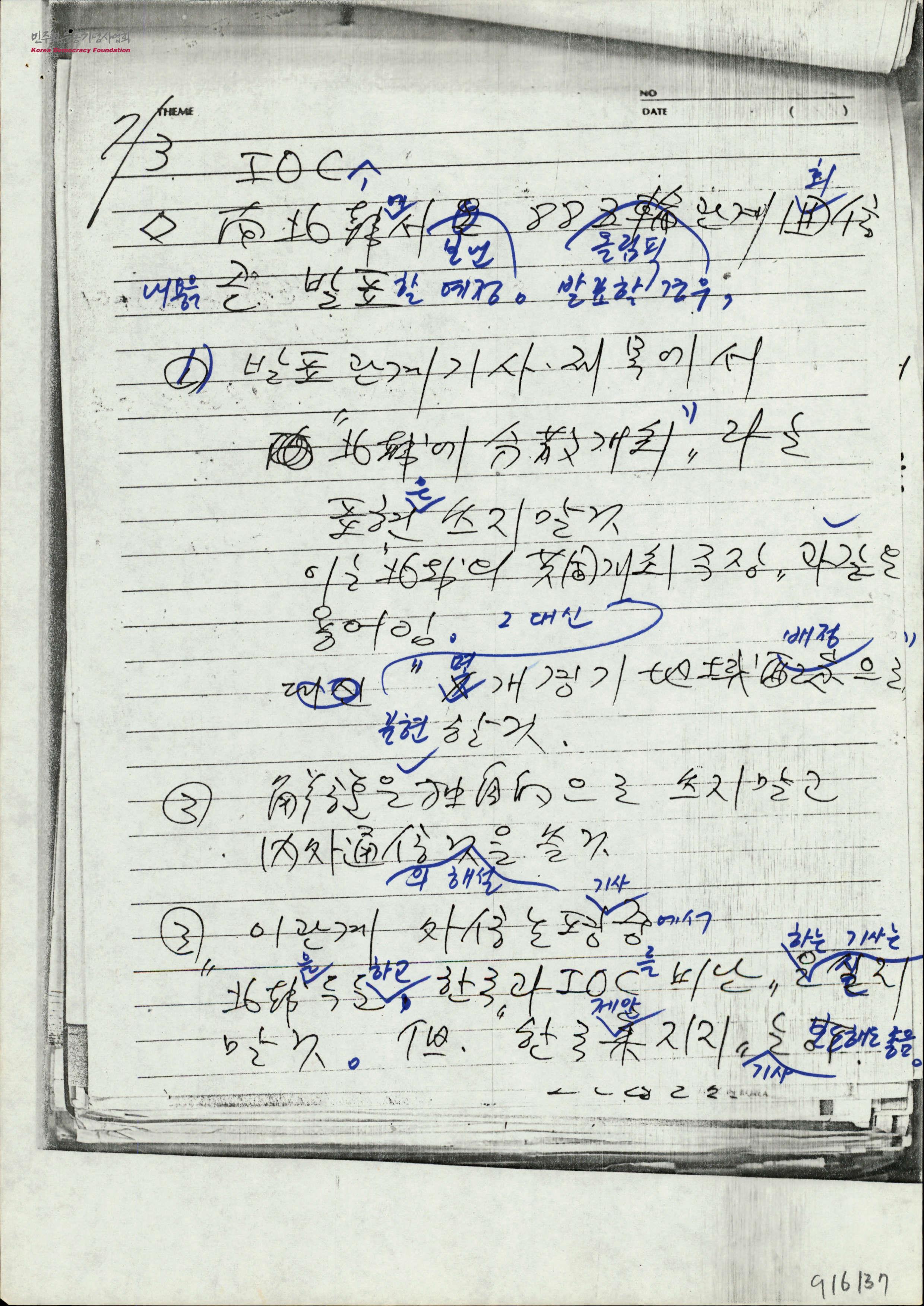 - IOC, 남북한에서 보낸 88올림픽관계 회신내용 발표 시 언론사 지침 1) 발표관계 기사 제목에서 『북한에 분산개최』라는 표현 금지, 대신 『몇개 경기 북한지역 배정』표현 사용할 것. 2) 해설은 독자적으로 쓰지말고 내외통신 해설 사용 3) 이 관계 외신 논평기사중에서 『북한을 두둔하고 한국과 IOC를 비난』하는 기사금지., 단 한국 지지 기사는 허용