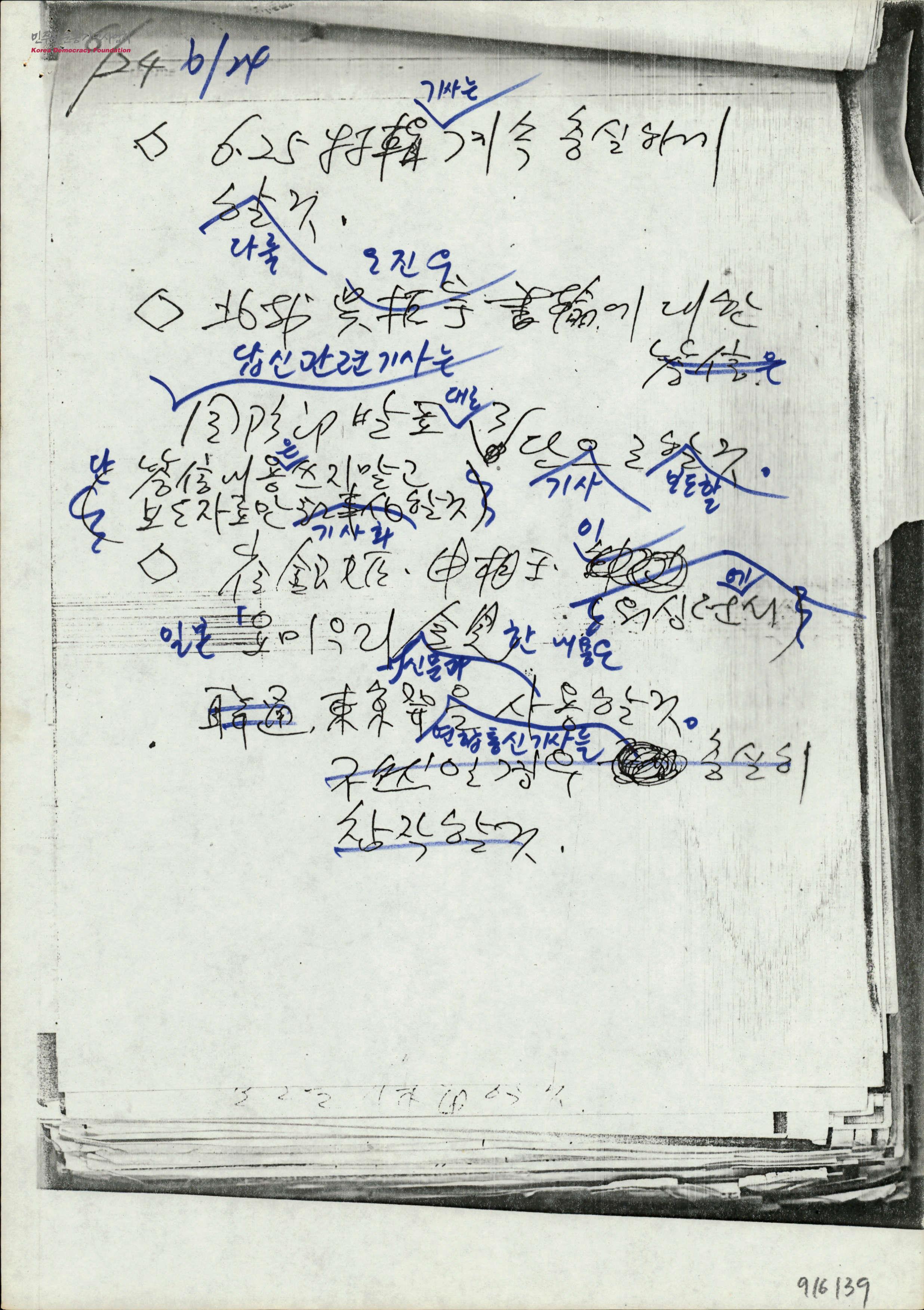 - 6.25 특집기사 충실히 다룰 것, 북한 오진우 서한에 대한 답신관련 기사는 국방부 발표대로 3단 보도할 것, 최은희 신상옥 워싱턴에서 일본 『요미우리』신문 회견 내용은 동경발 연합통신 기사 사용할 것을 지시하는 보도지침