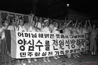 - 생산자 및 기증자가 ‘박용수’인 사진의 사용은 구매신청을 클릭하여 직접 사진 구매 신청을 하실 수 있습니다. 생산자 및 기증자가 ‘경향신문사’인 사진의 사용은 경향신문사 담당자(02-3701-1635)를 통해 구매하실 수 있습니다. 그 외의 생산자 및 기증자는 민주화운동기념사업회 사료관 담당자( h_jungwon@kdemo.or.kr / 031-361-9586 )에 문의바랍니다.