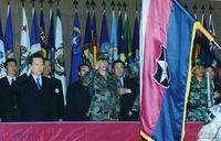 - 평화의 댐 축조 사항을 설명하는 군인