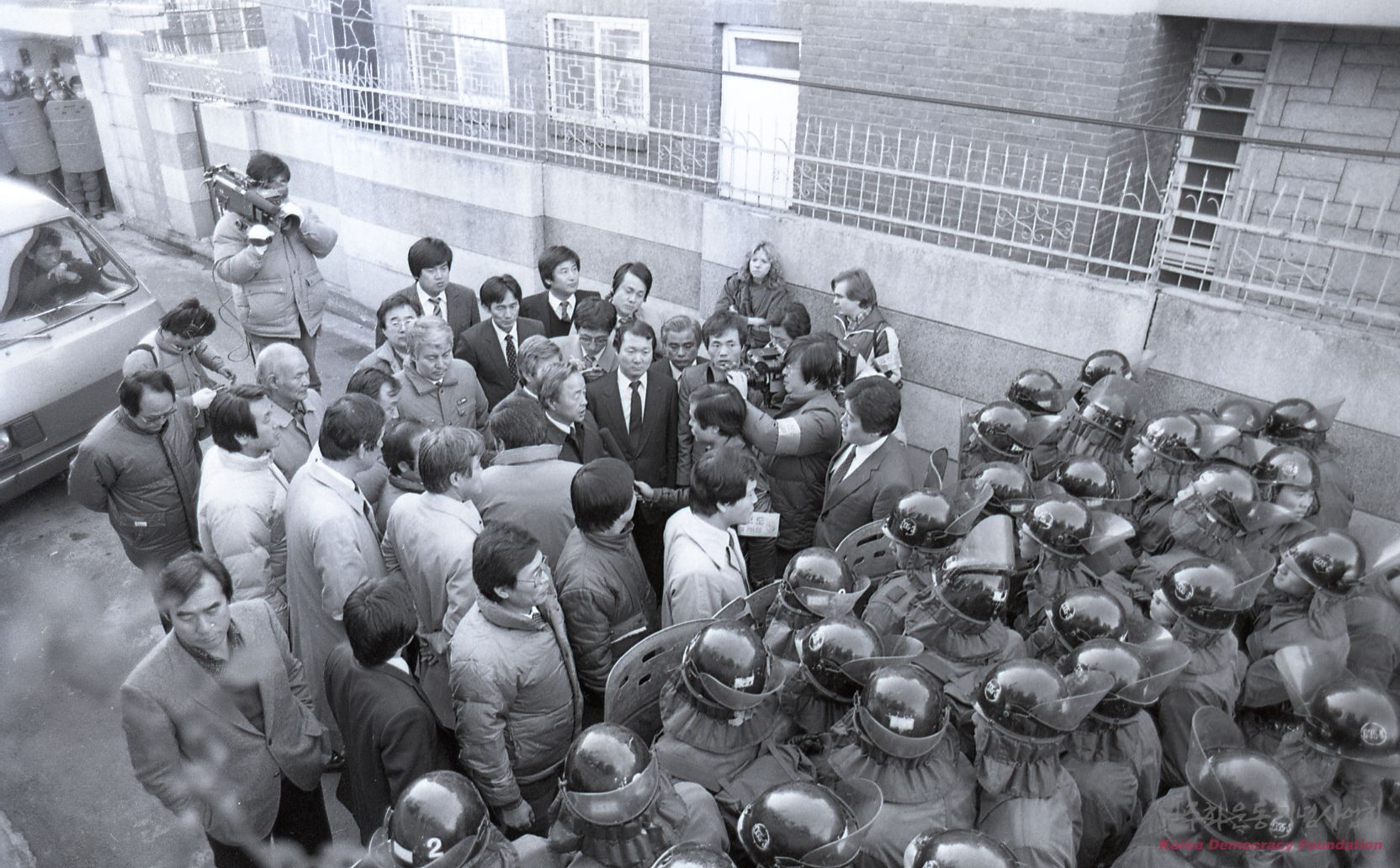 - 상도동 자택 앞에서 김영삼이 정치탄압에 항의하는 모습