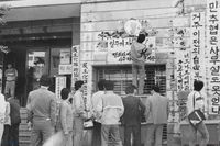 - 박종철 열사 고문살해 항의시위를 벌이고 있는 학생들
