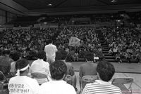 - 판문점에서 열린 군사정전위원회에서 유엔측 대표가 KAL기 폭파범 김현희에 대한 비디오를 틀어 북한 대표들에게 보여주고 있는 모습