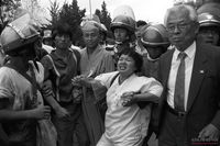 - KAL858기 폭파한 김현희(일명 마유미)가 조사를 받기 위해 검찰청에 들어서고 있다.