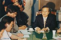 - 1993년 한국기독교교회협의회에서 발행하고 지음. 민주화개혁과 민족통일을 위한 정책협의회의 일정표와 예배순서, 현대신학연구소 소장 조성노의 민주화개혁과 민족통일을 위한 사회선교, 서울대학교 사회학과 교수 이각범의 신한국 건설을 위한 개혁의 주제발표문과 민자당의원 김덕룡과 기장 교육원 원장 목사 김상근, 충현교회 당회장 목사 신설종, 민주당 최고의원 이붕영의 토론 등의 내용이 포함되어 있음.