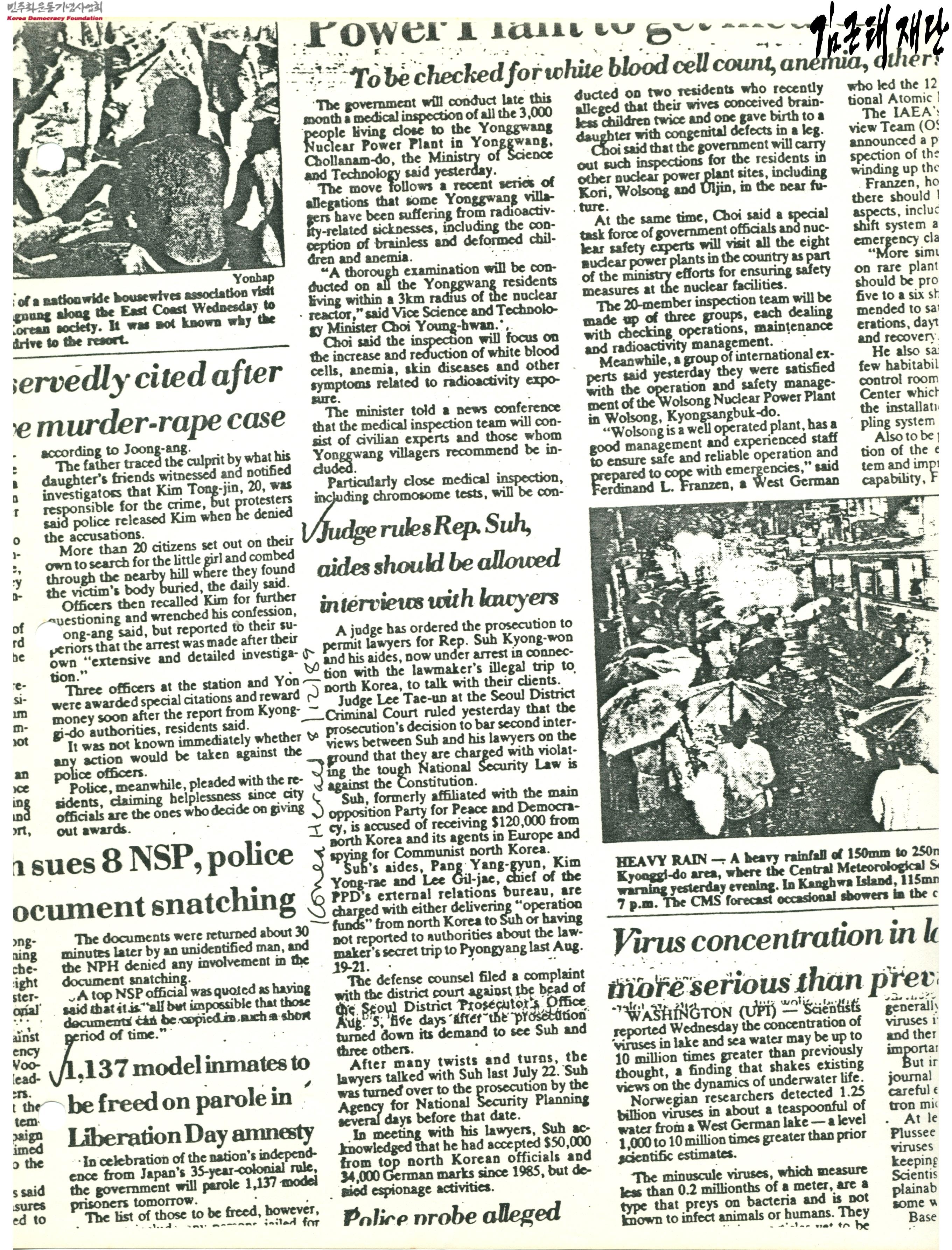 Judge rules Rep. Suh, aides should be allowed interviews with lawyers, 1,137 model inmates to be freed on parole in Liberation Day amnesty 기사