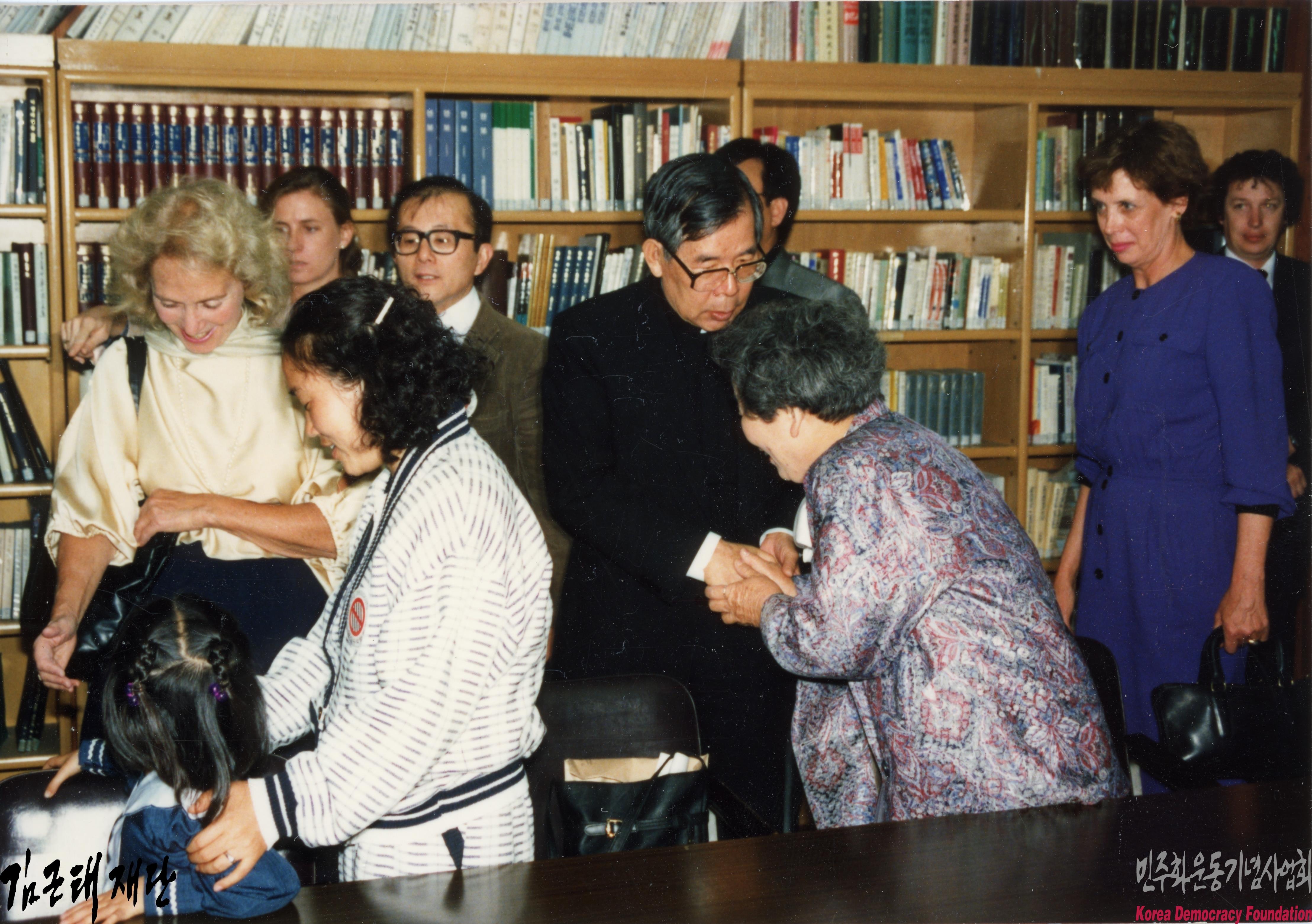 - 1988년 5월 4일 가톨릭센터에서 열린 로버트 케네디 인권상 시상식에 앞서 인재근과 김수환 추기경, 로버트케네디인권센터 임직원들이 면담을 하는 모습이 담겨 있음. 김수관 추기경과 악수를 하는 로버트케네디인권센터 임직원의 사진, 임직원과 인재근이 이야기하는 사진 등이 포함되어 있음