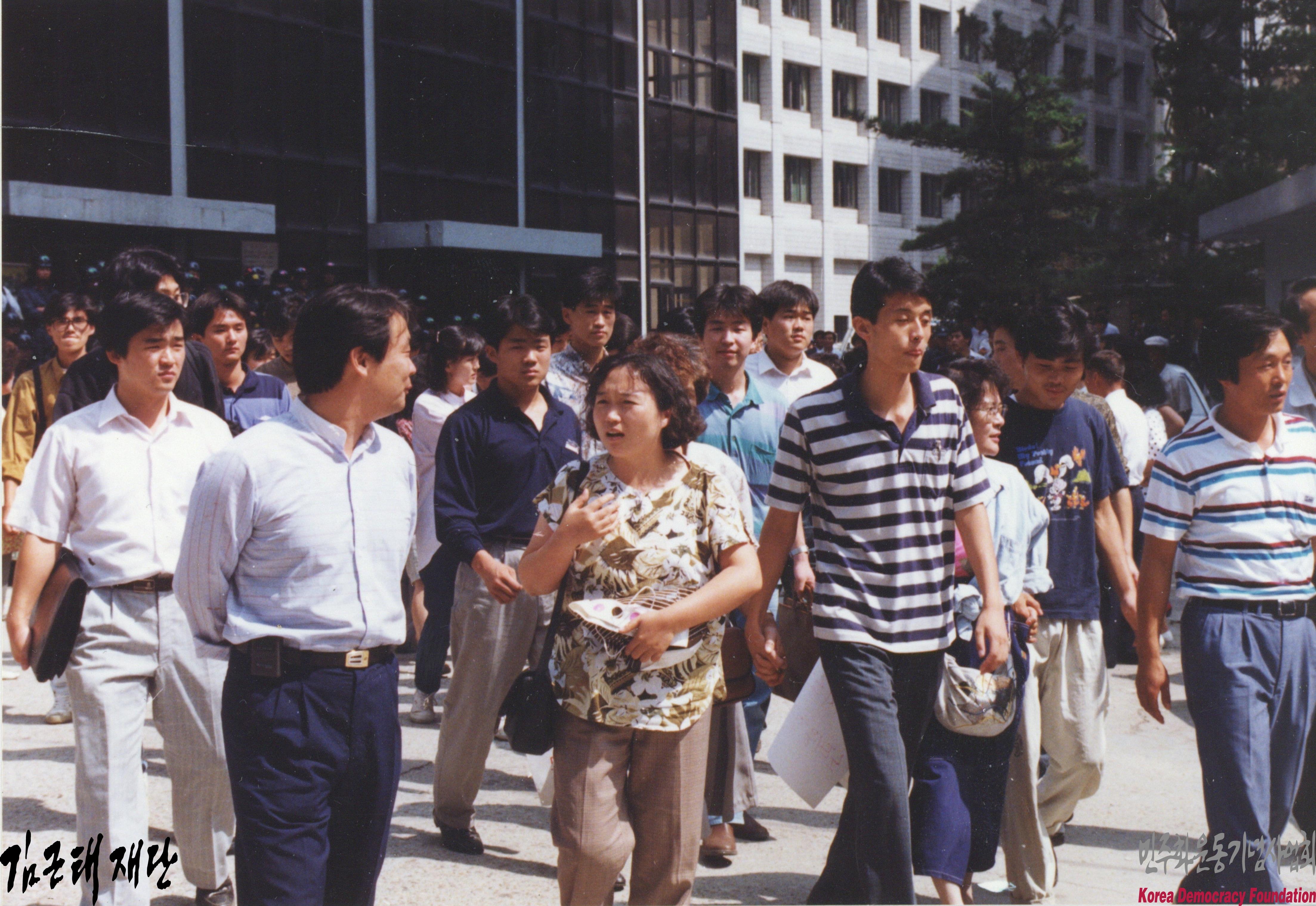 - 서울시청 서소문별관에서 열린 시위에 참가한 인재근의 모습이 담겨 있음. 시위대 뒤에는 전투경찰들이 서울시청 서소문별관 청사 2동 주변을 둘러싸고 있음
