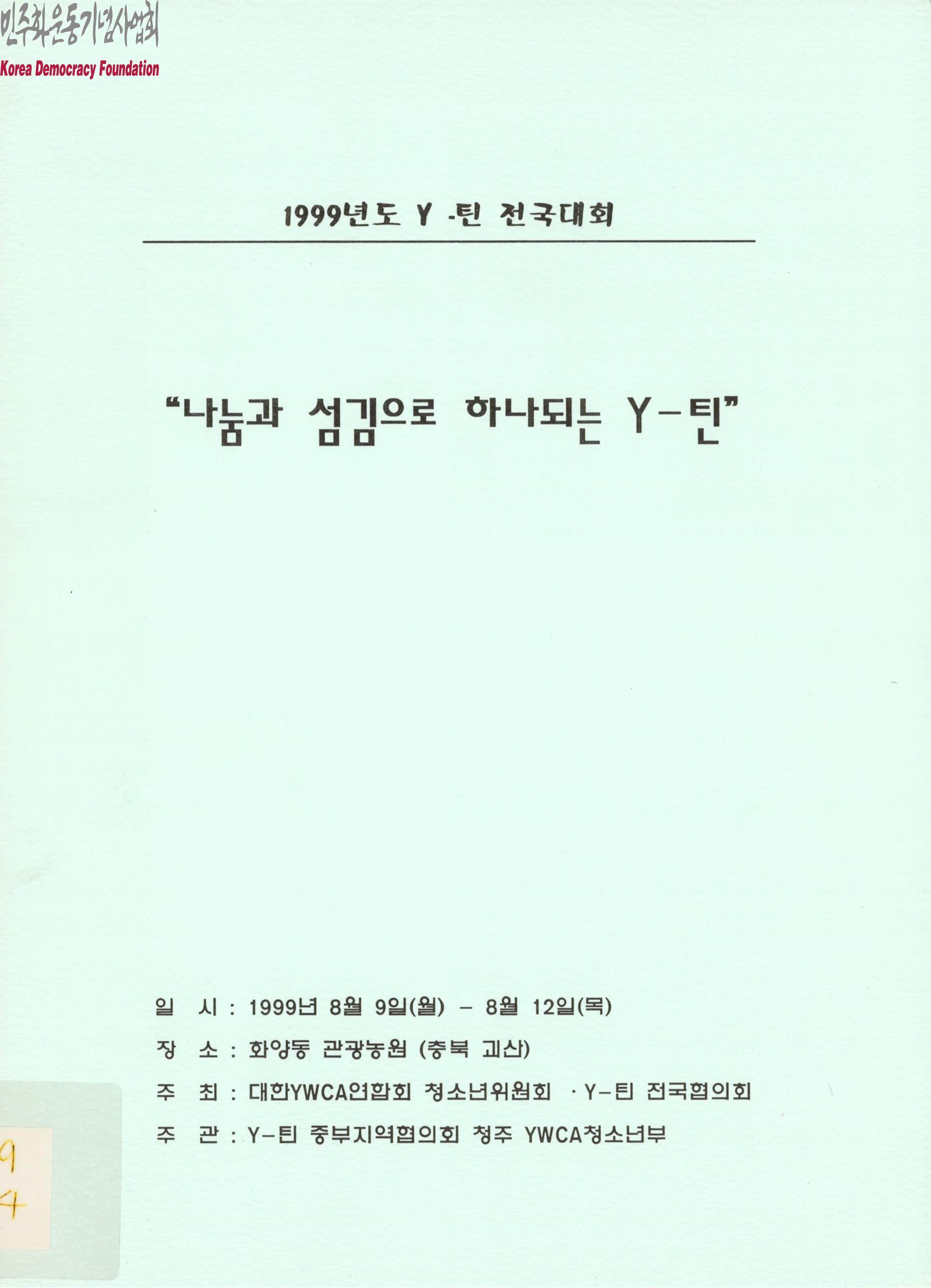 1999년도 Y-틴 전국대회 - "나눔과 섬김으로 하나되는 Y-틴"