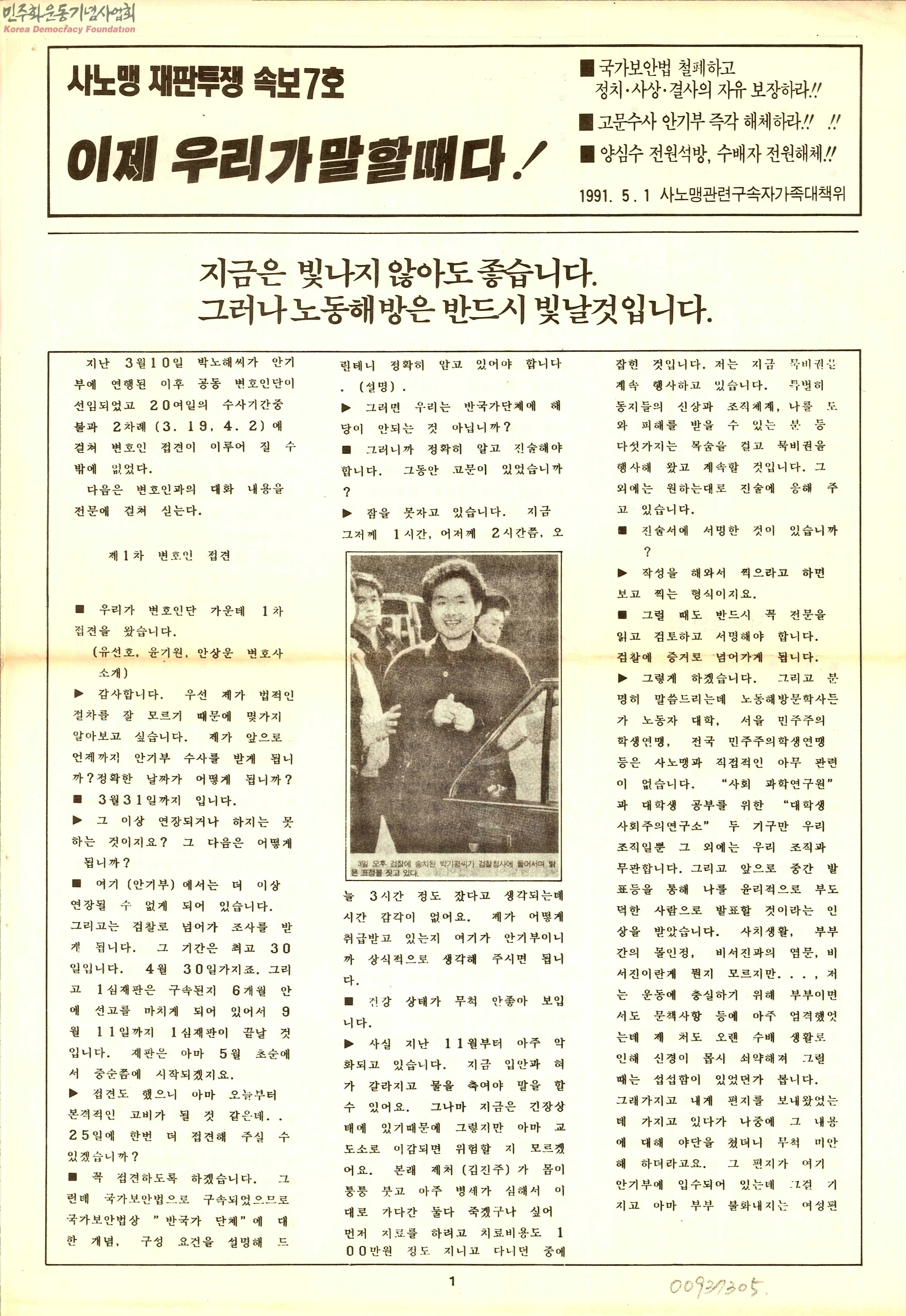 사노맹 재판투쟁 속보7호 이제 우리가 말할때다!