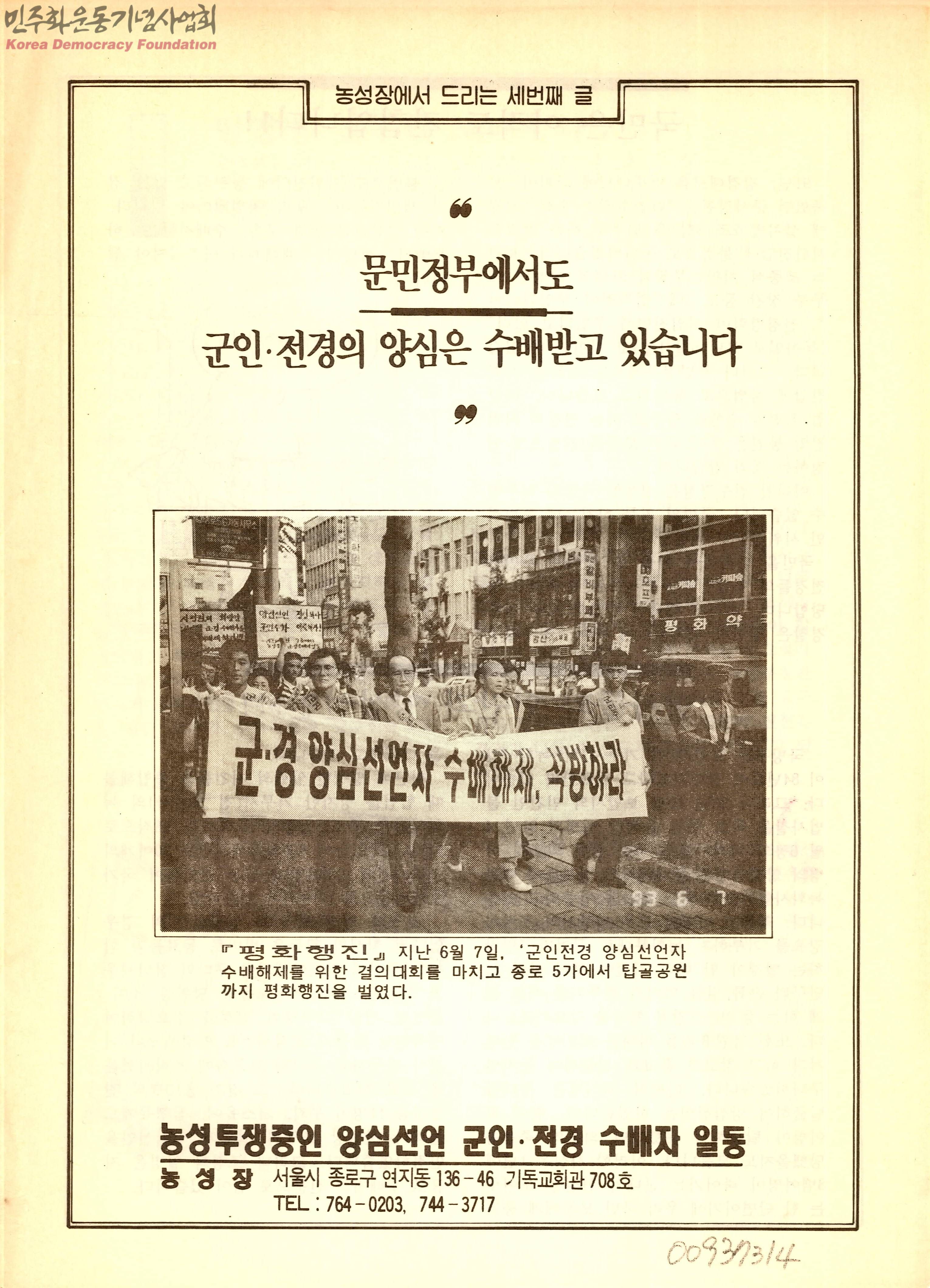 문민정부에서도 군인.전경의 양심은 수배받고 있습니다.[리플렛]
