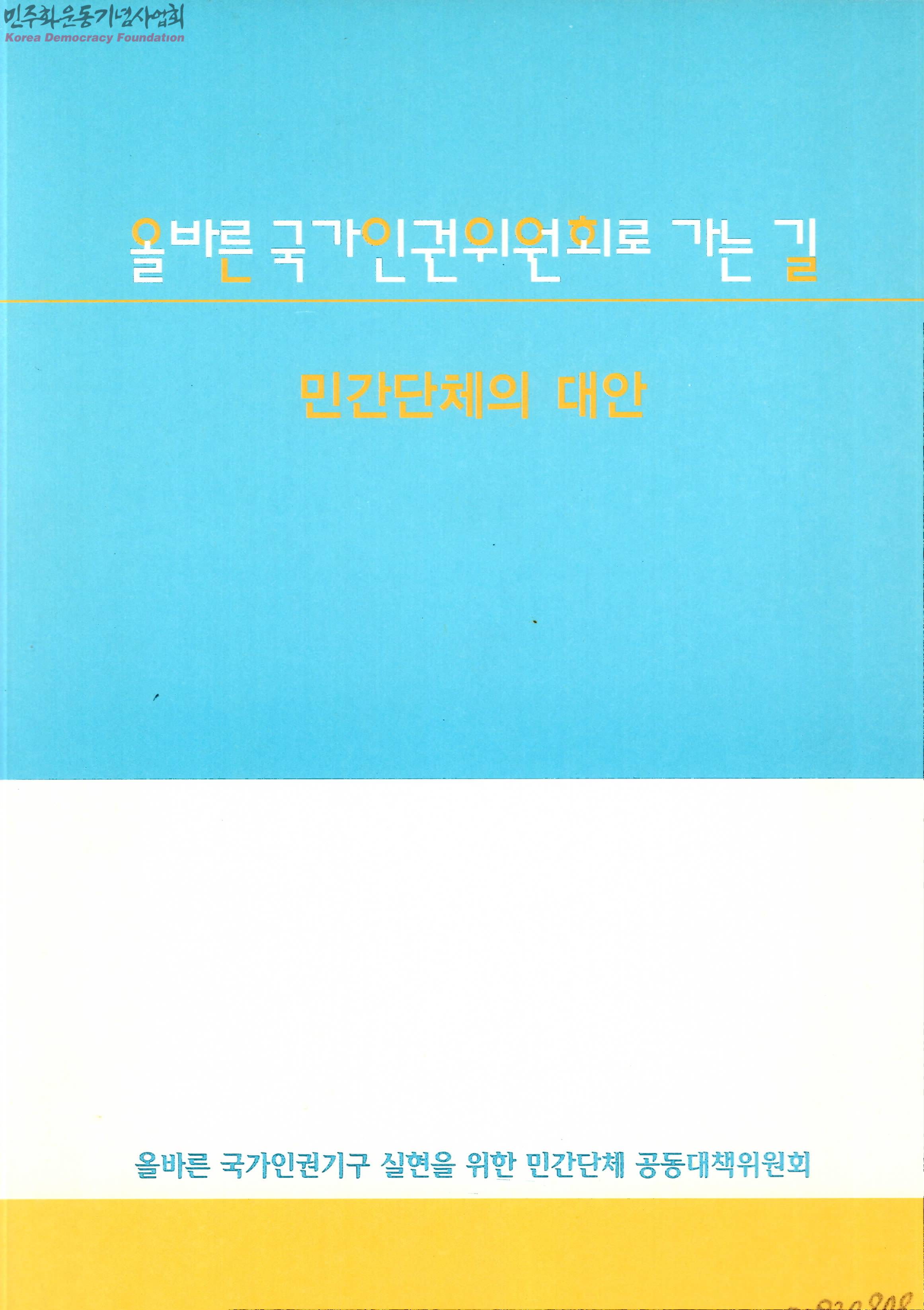 - 국가인권기구의 정의와 국가인권위원회법안의 개요 및 Q&A 등이 수록된 브로슈어로 인권위와 관련한 신문 사설 발췌들이 포함됨.