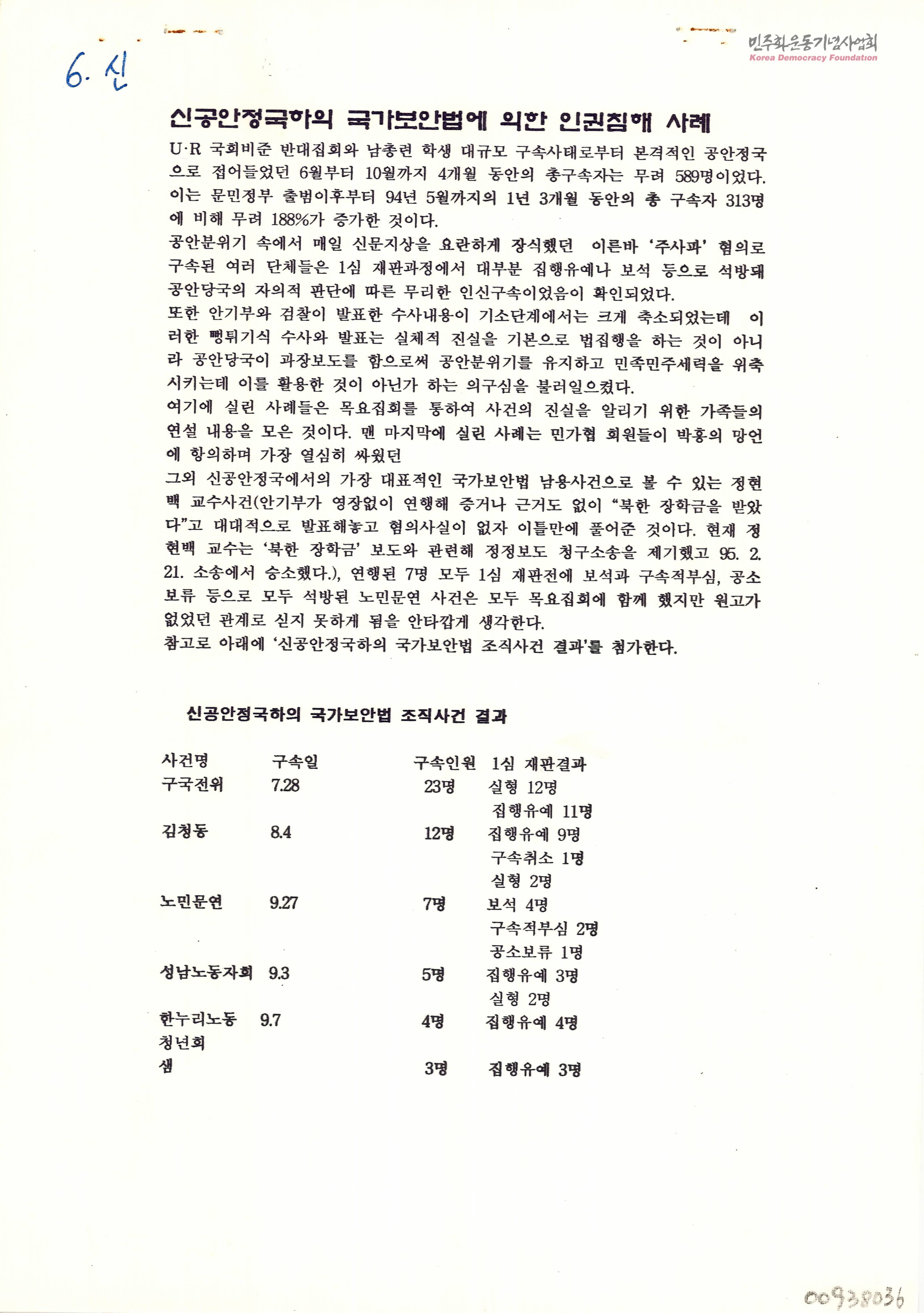 [민가협 목요집회 자료집 신공안정국 사례 원고]