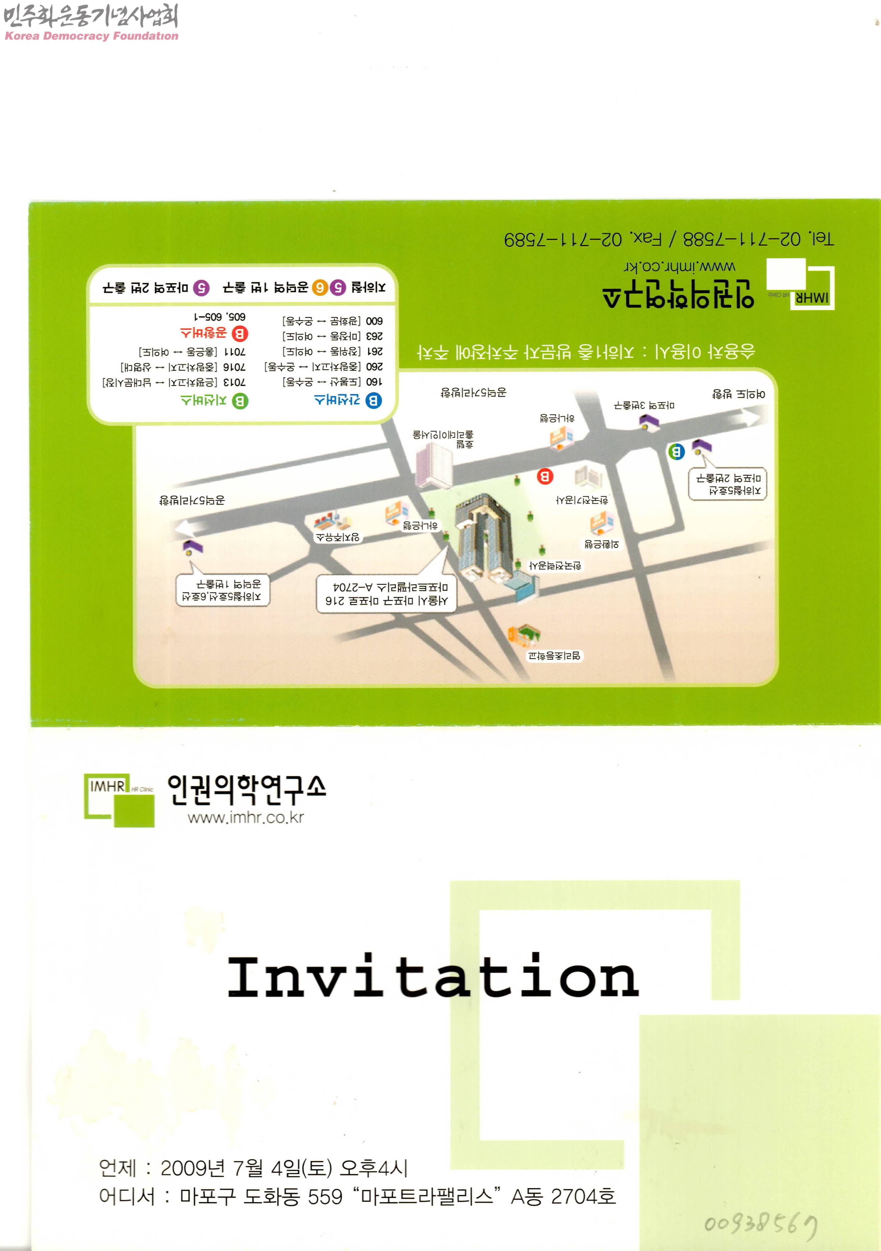 - 인권의학연구소에서 보낸 연구소 개소식 안내를 담은 초대장