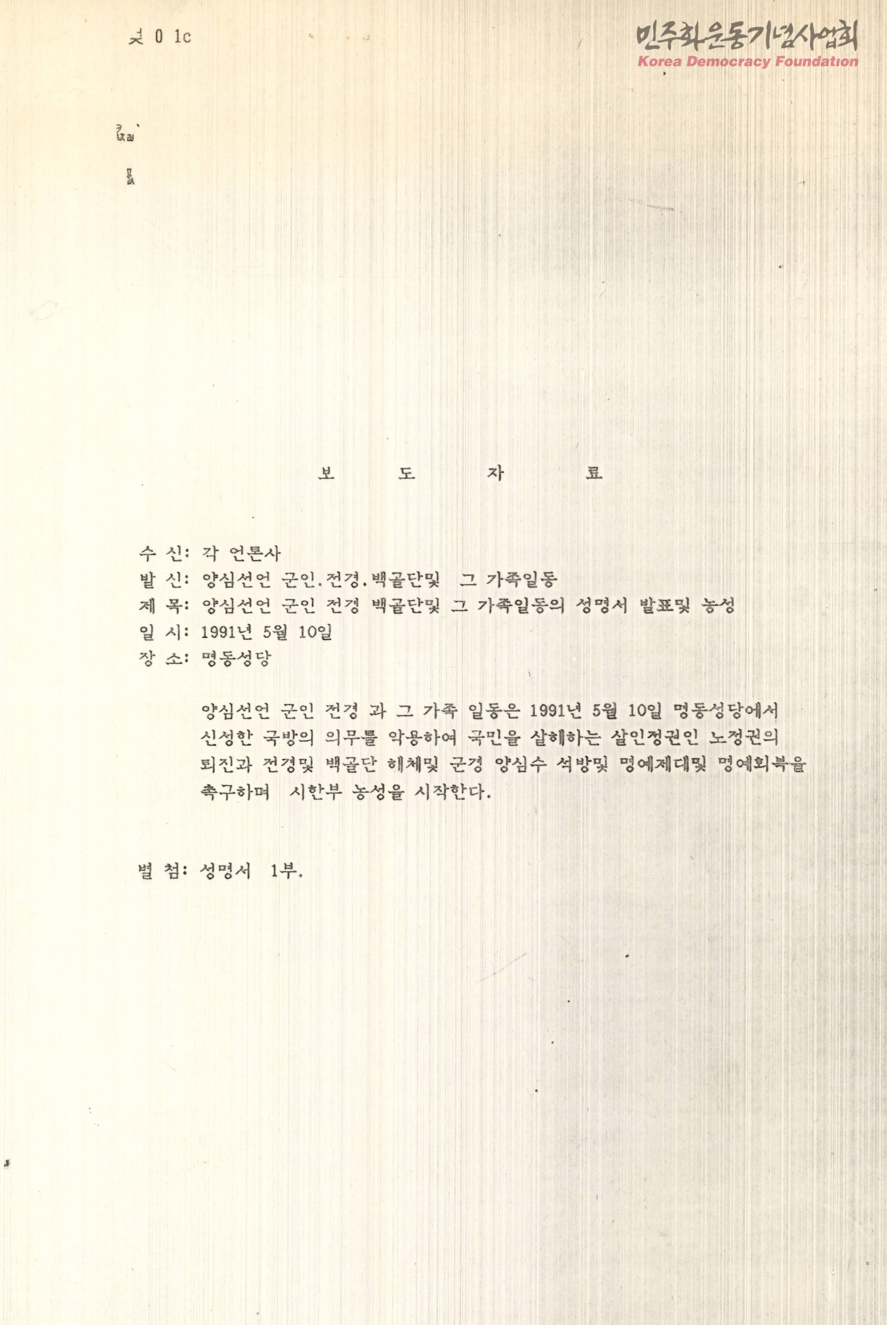 보도자료[양심선언 군인 전경 백골단 및 그 가족 일동의 성명서 발표 및 농성]