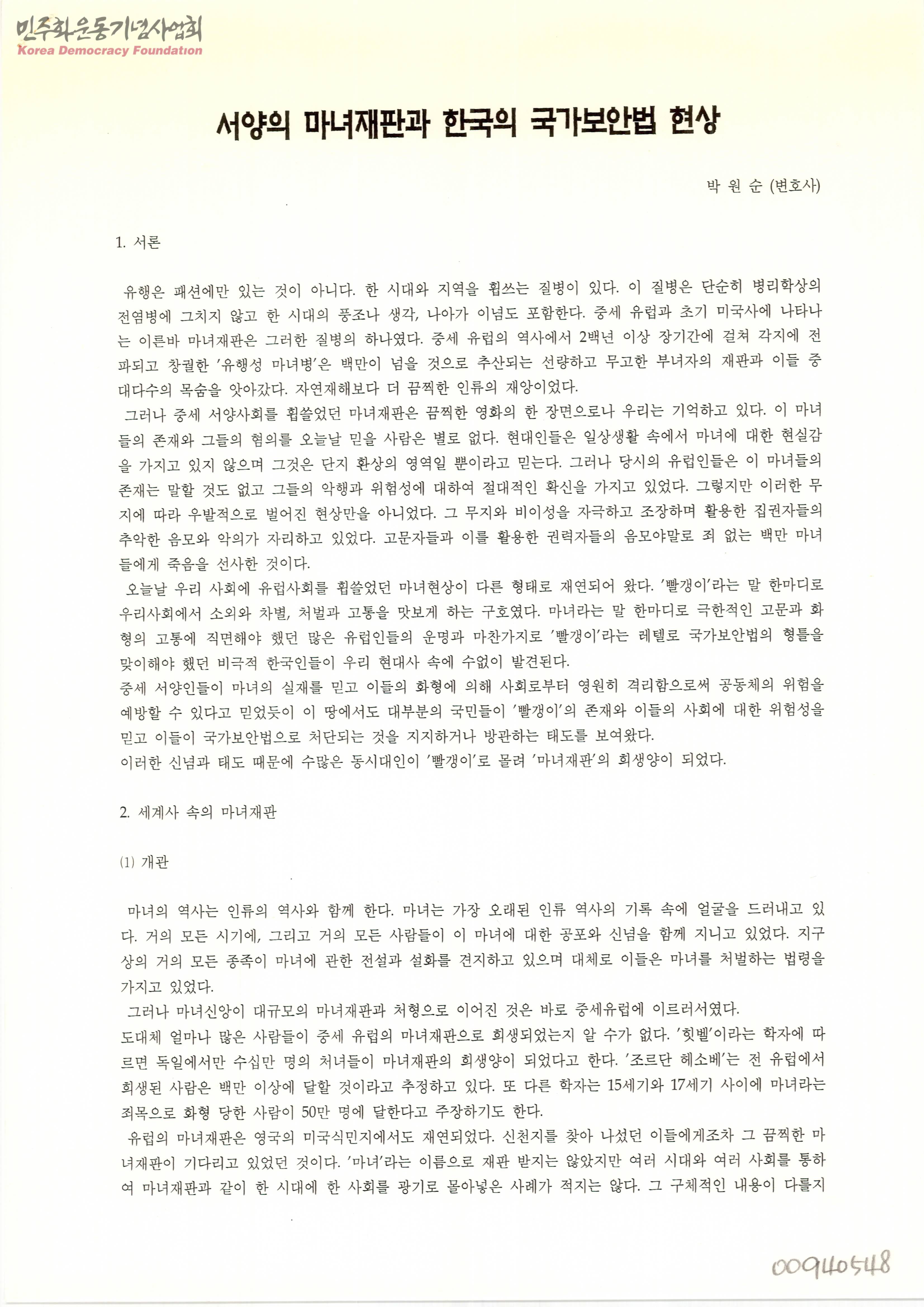 서양의 마녀재판과 한국의 국가보안법 현상[연구보고서]