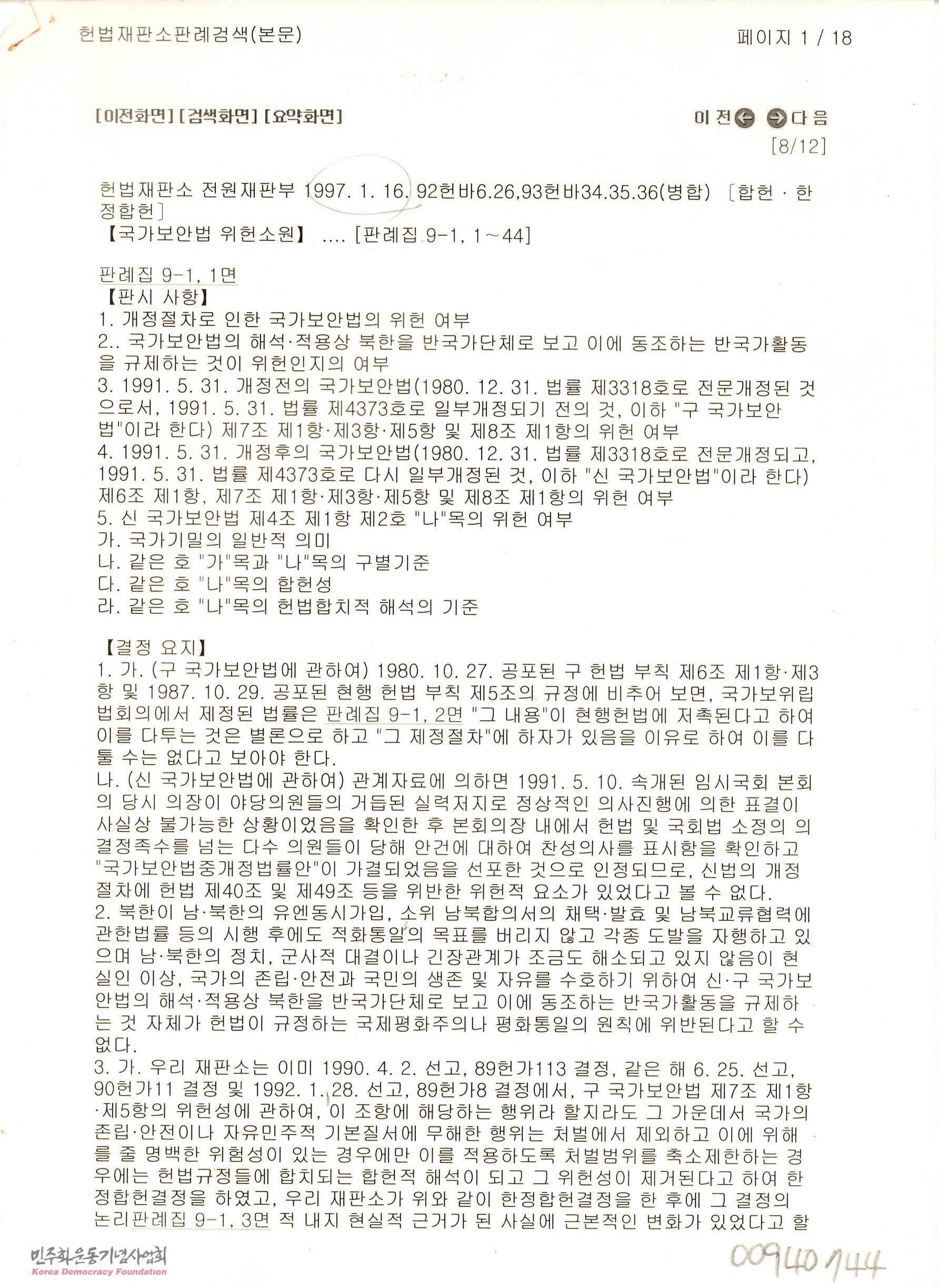 국가보안법 위헌소원 1997.01.16