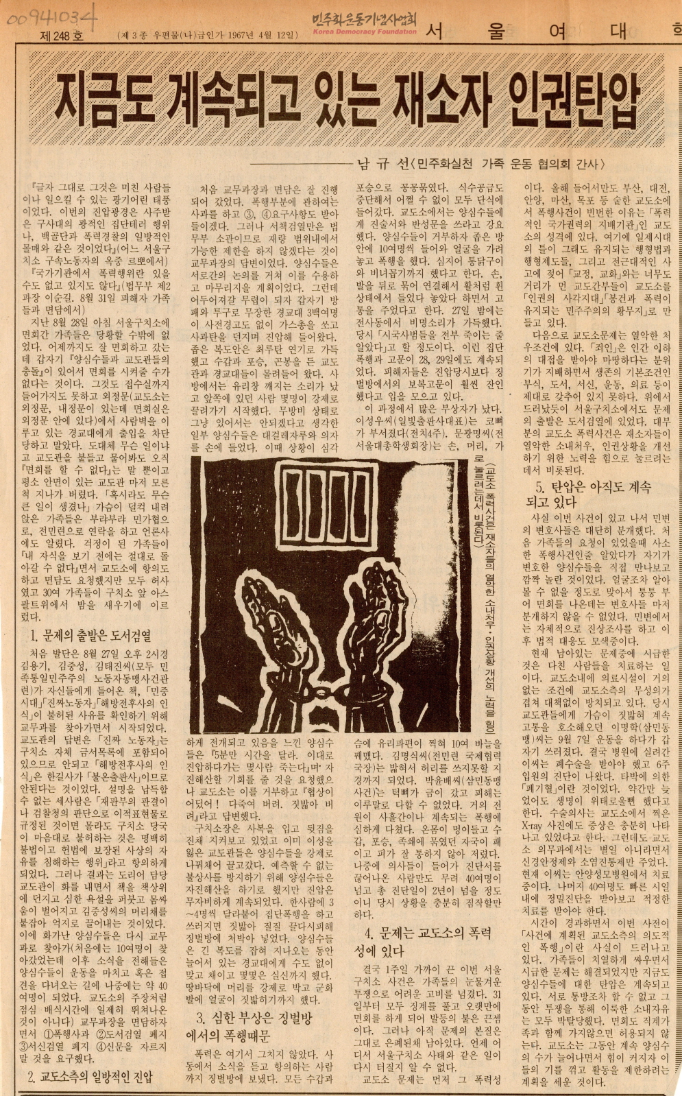 - 구속 양심수에 대한 도서검열로 인해 발생한 폭행 등의 인권탄압 사건에 대해 서술하고 있는 학보 스크랩.