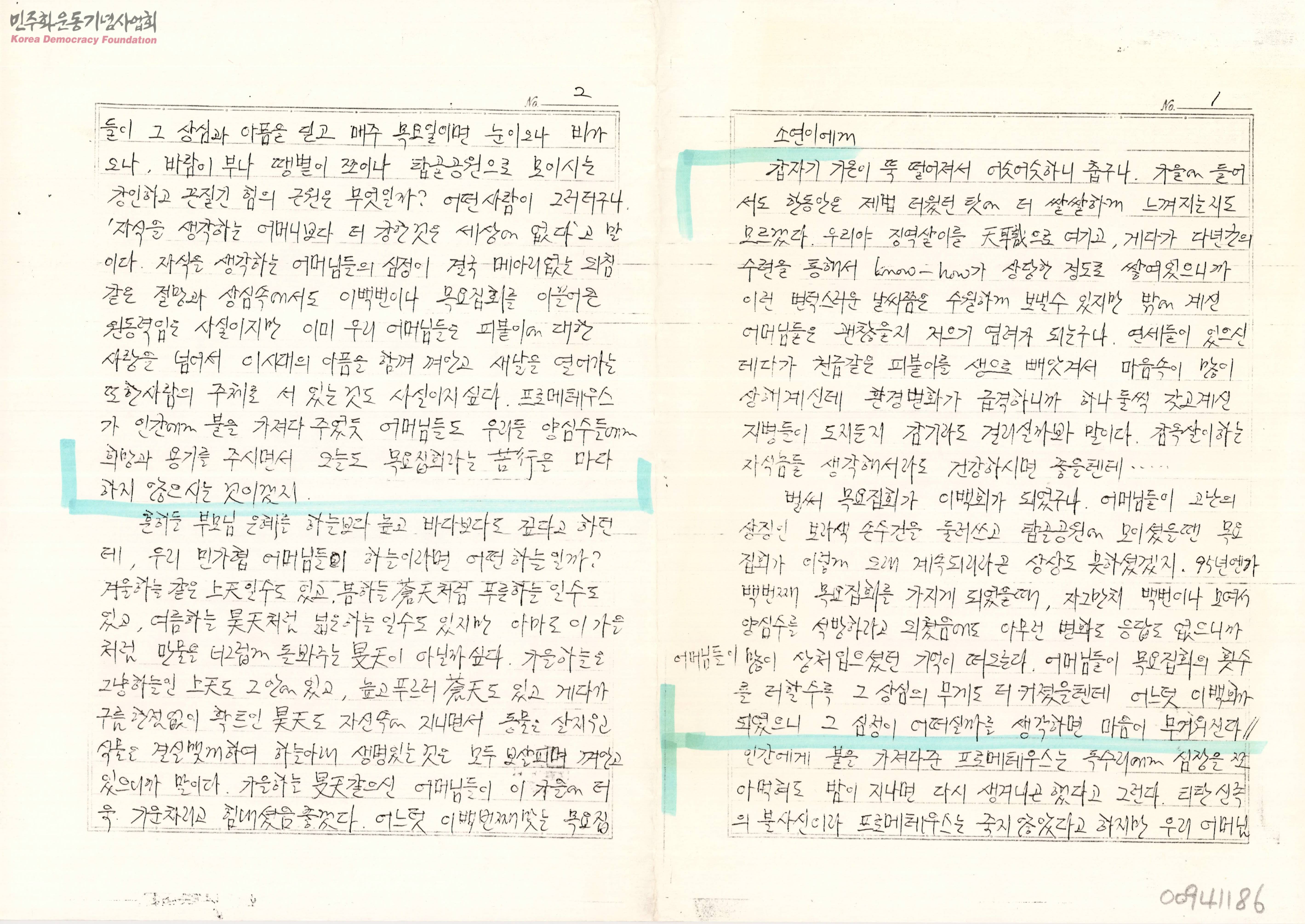 - 수감자들이 목요집회에 대한 응원과 지지의 내용을 담아 지인들에게 쓴 편지모음