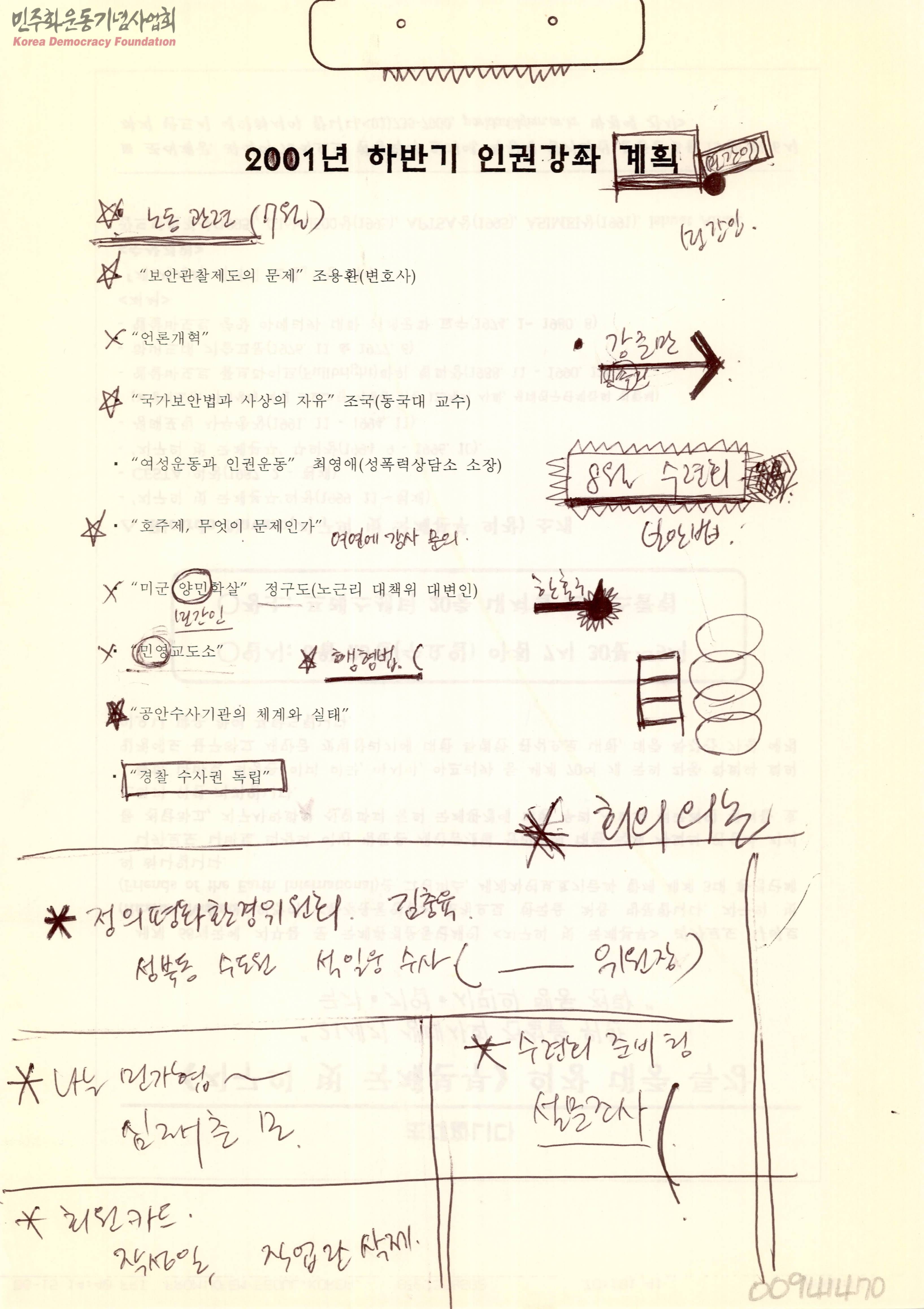 2001년 하반기 인권강좌 계획