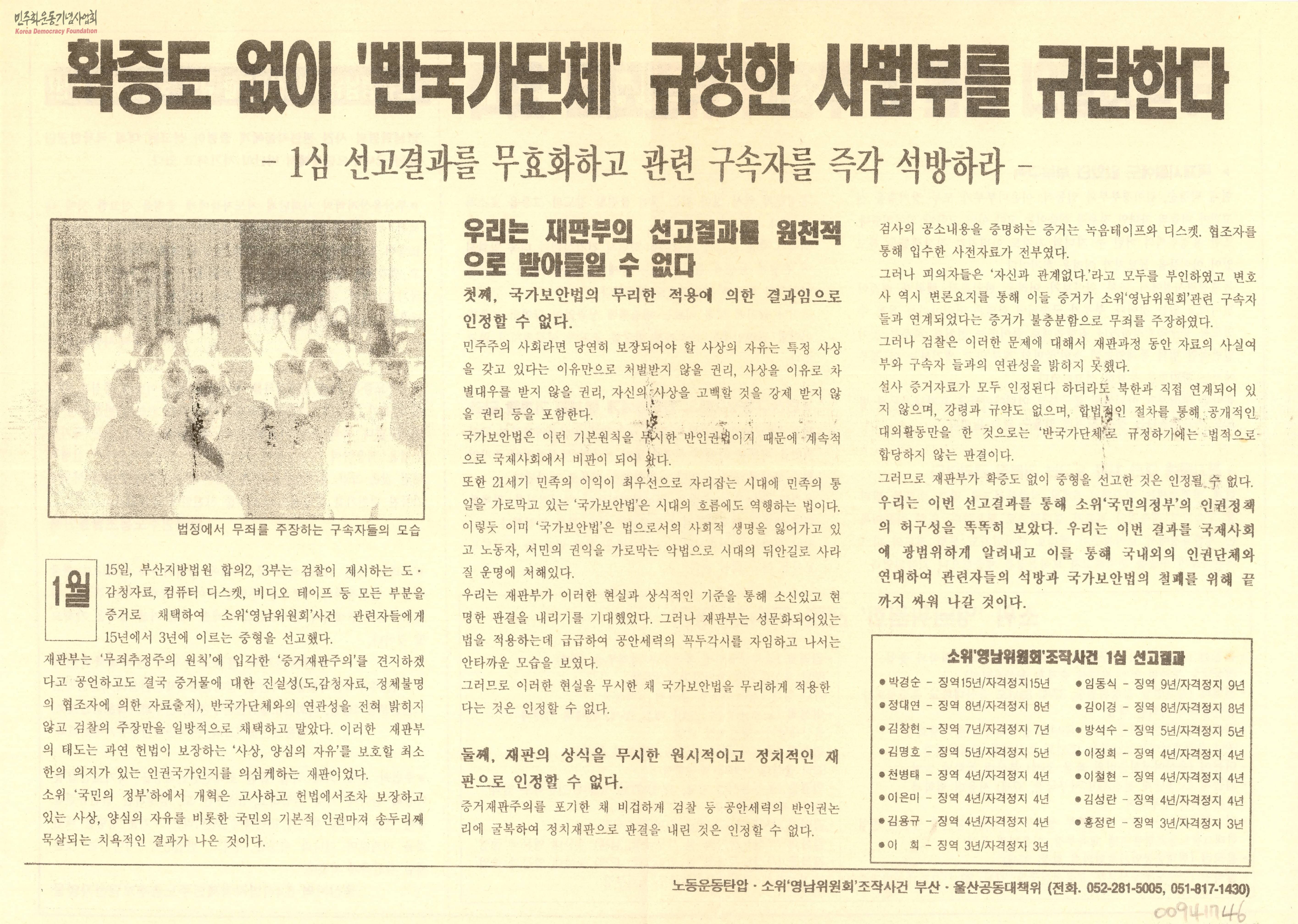 확증도 없이 '반국가단체' 규정한 사법부를 규탄하다