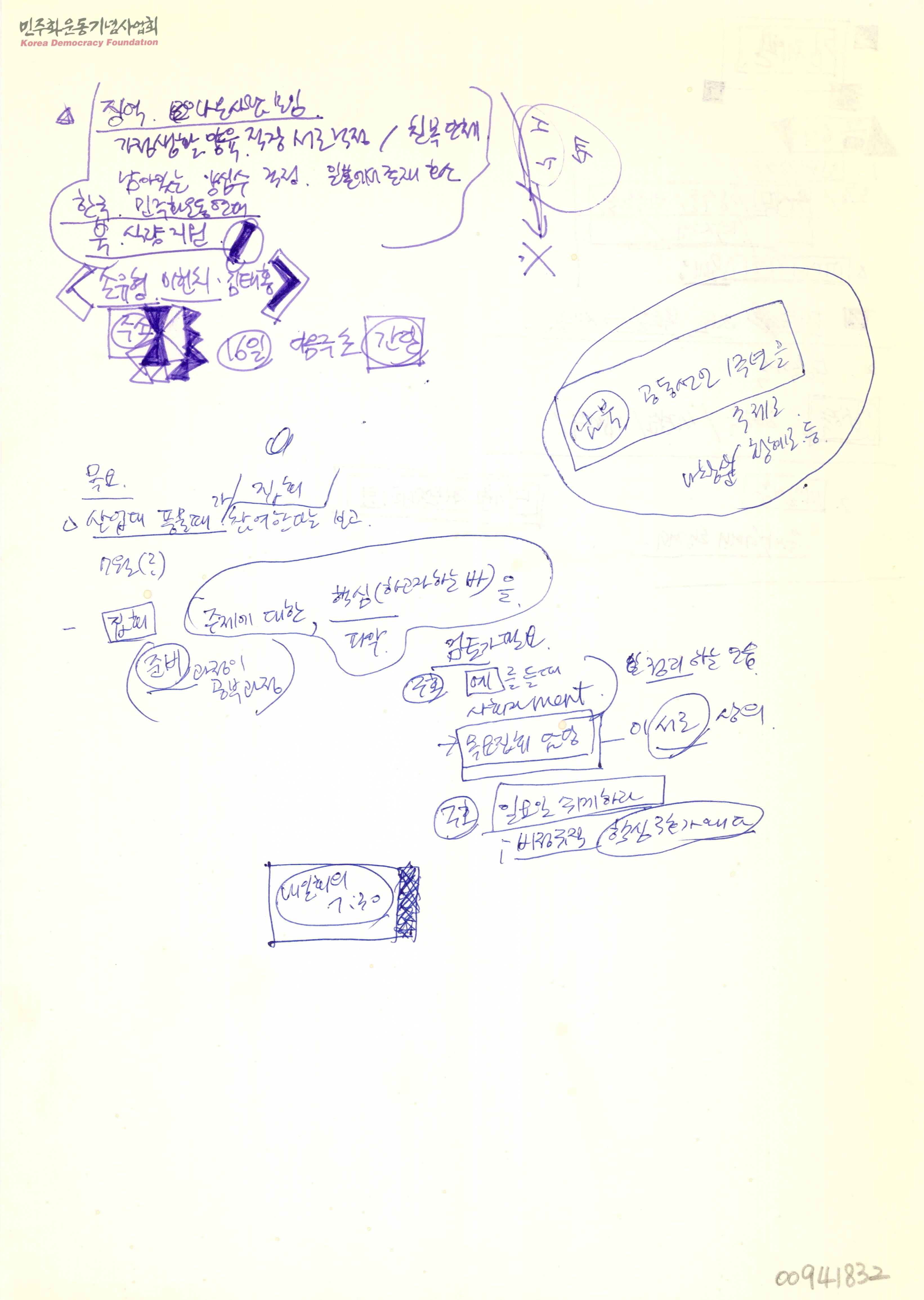 - 목요 집회, 남북공동선언 1주년, 인권 강좌 등의 키워드만 확인 가능한 자필 메모