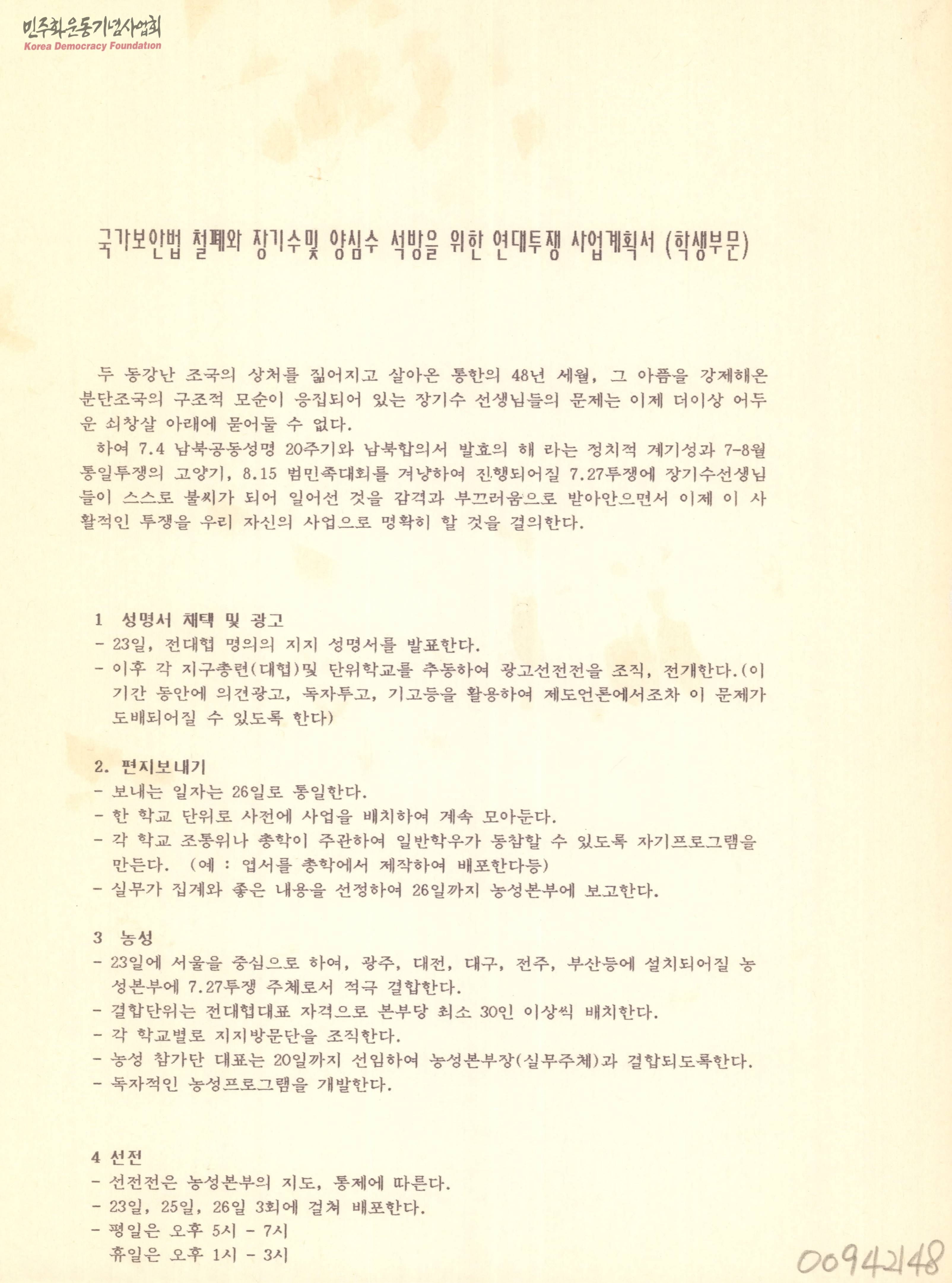 국가보안법 철폐와 장기수 및 양심수 석방을 위한 연대투쟁 사업계획서 (학생부문)