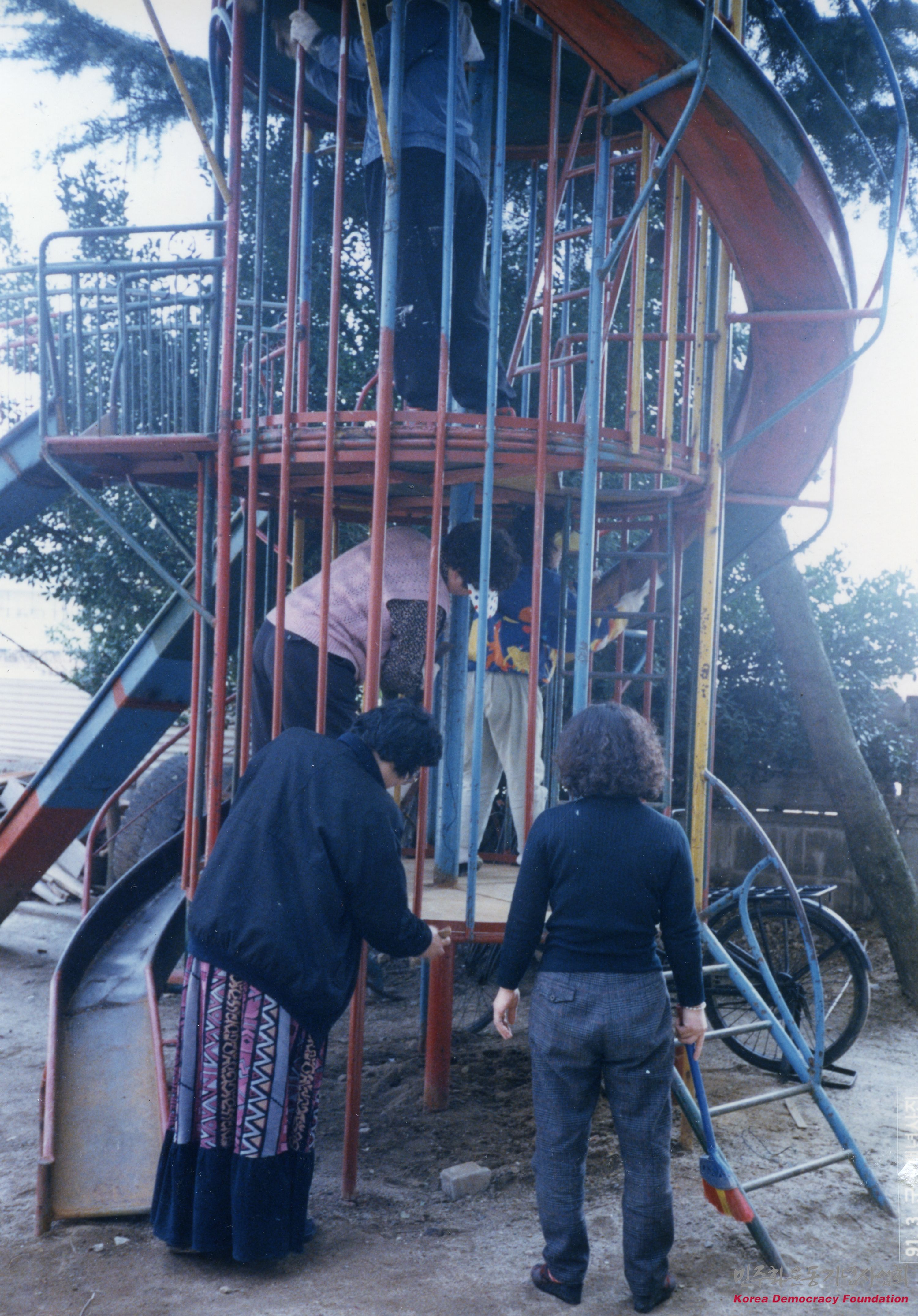 군산YWCA 페인트 훈련에서 어린이 놀이터에 페인트 교육