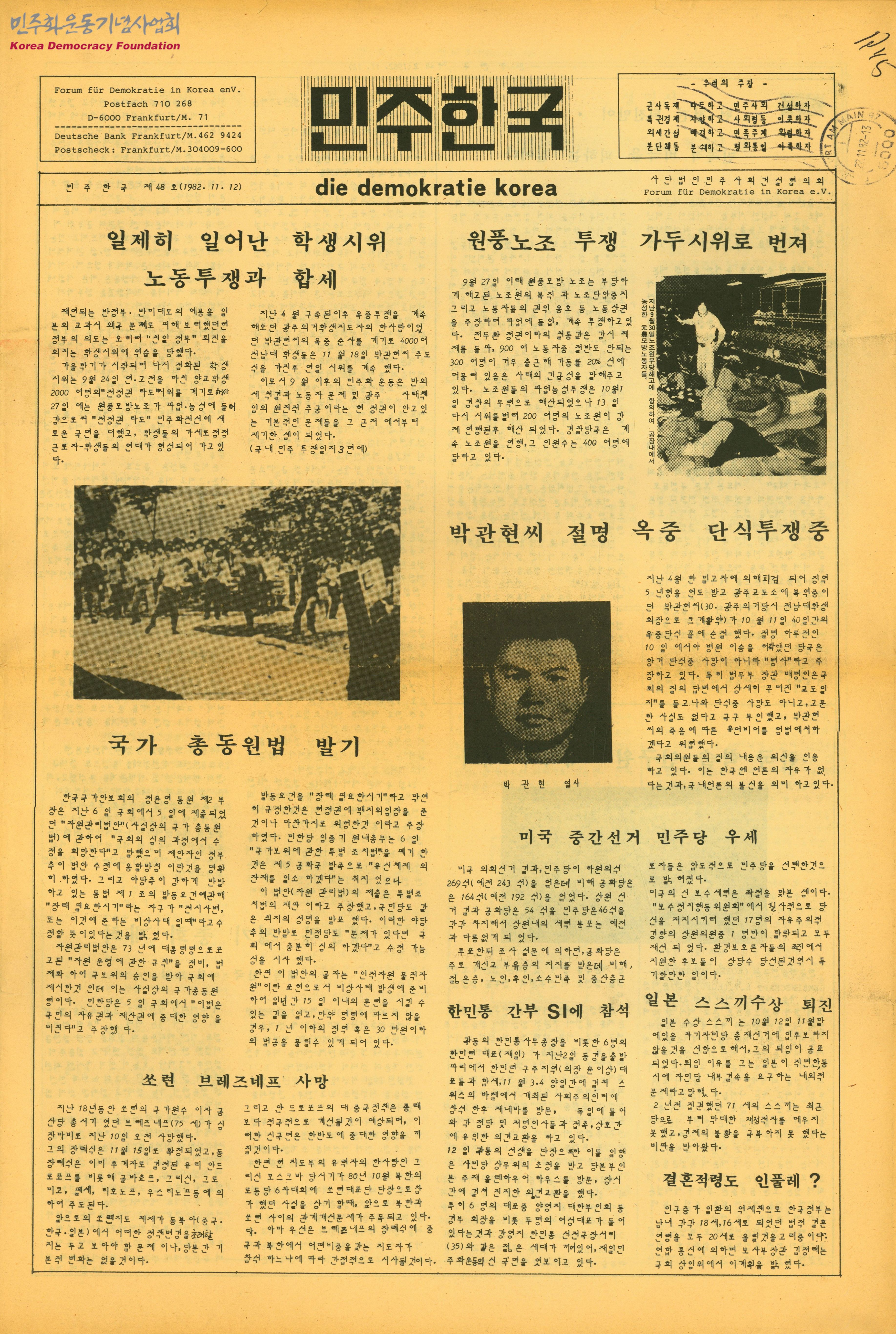 - 일제히 일어난 학생시위 노동투쟁과 합세, 국가 총동원법 발기, 박관현씨 절명 옥중 단식투쟁중, 국내 민주 투쟁 일지, 한국은 "제2의 일본"이 될 수 있는가? 등의 내용을 다루는 신문