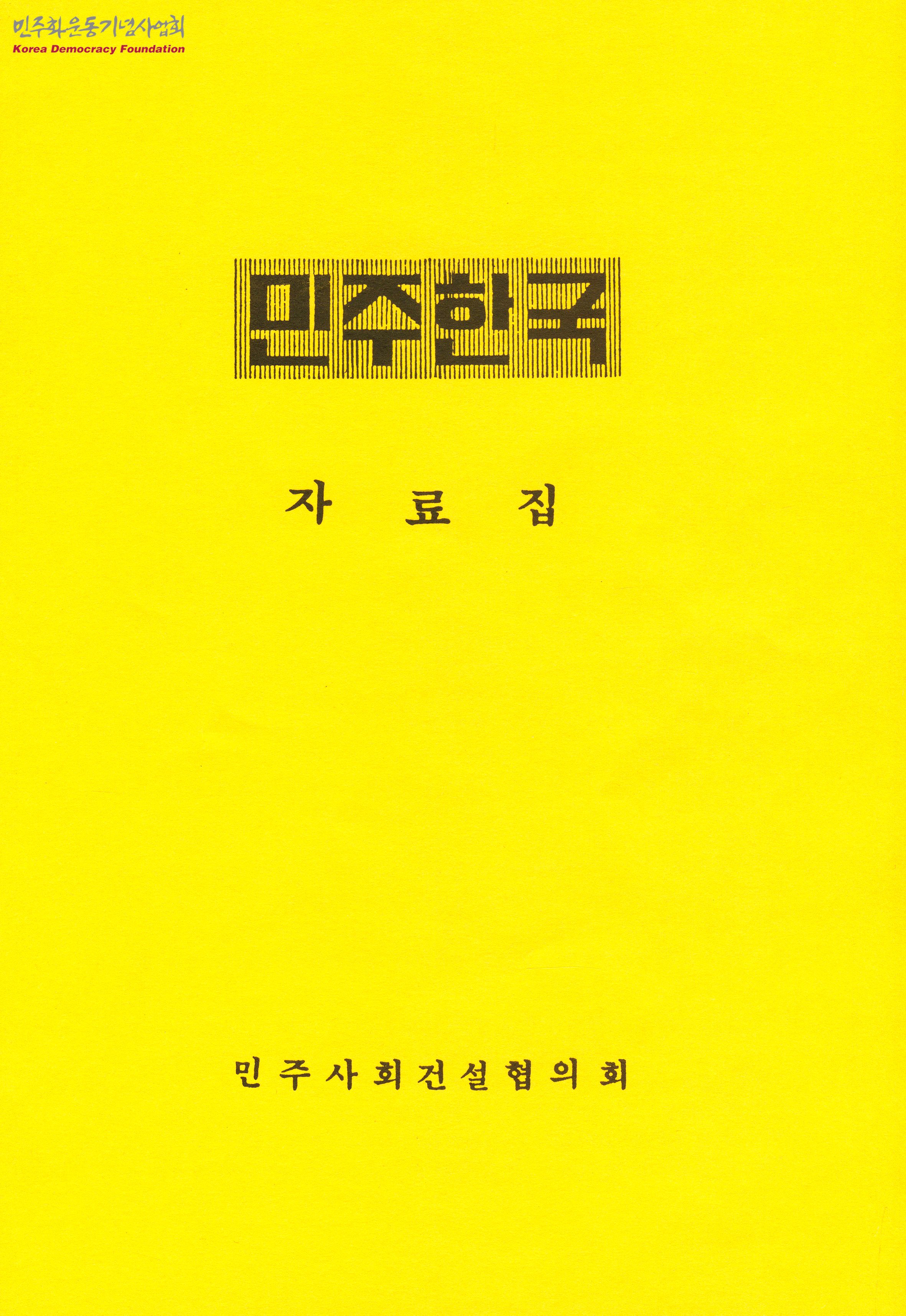 - 1986년도 국내의 각 분야별 상황을 소개하는 자료집 차례 「민주한국」 자료집을 펴내며 입문적 국가이해의 기본틀 국내논쟁의 분석과 문제제기 월간동향(특집) 미국은 한국의 위기에 어떻게 대처할 것인가?