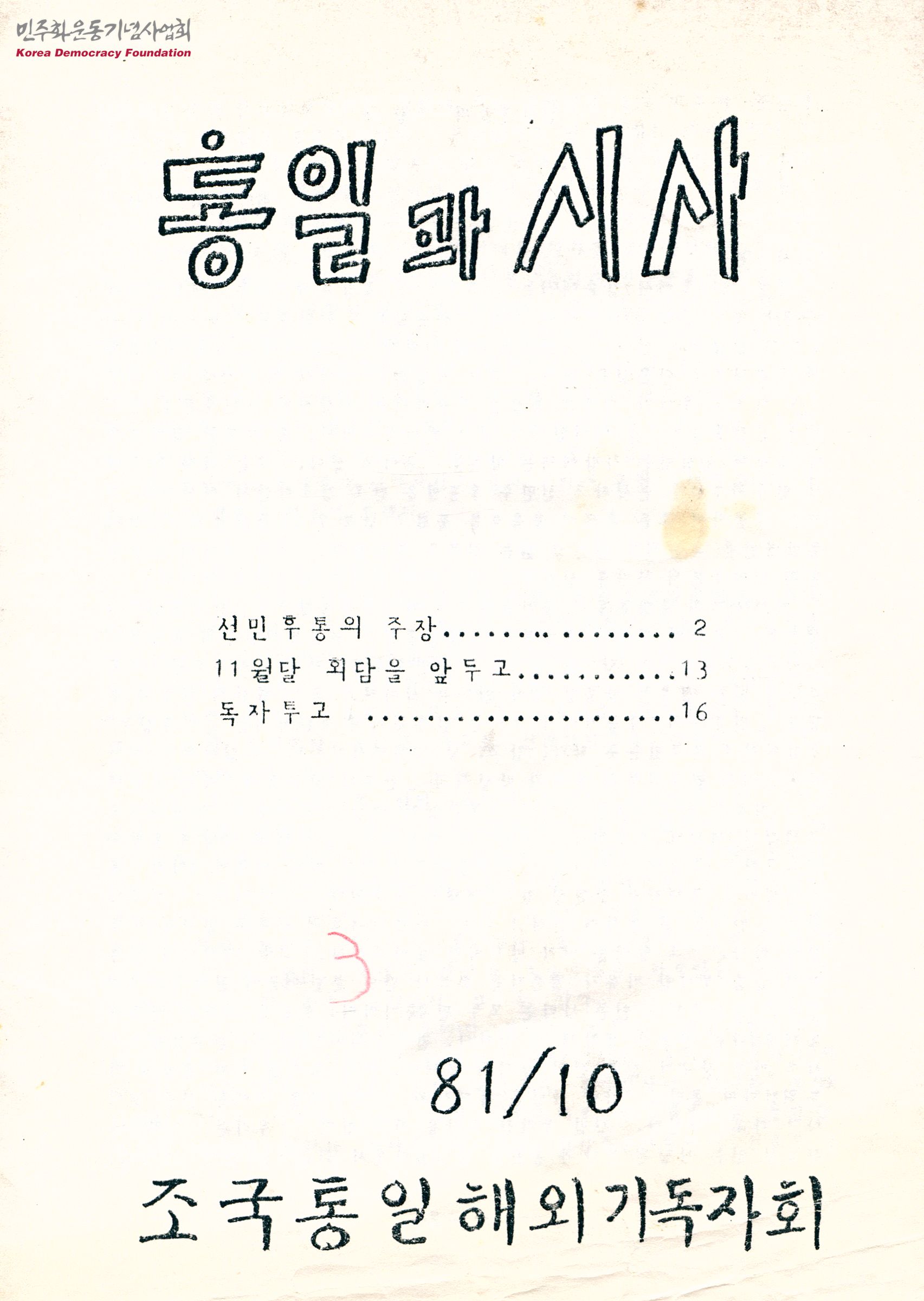 - 선민후통의 주장, 11월달 회담을 앞두고, 독자투고 등의 내용이 포함된 소식지