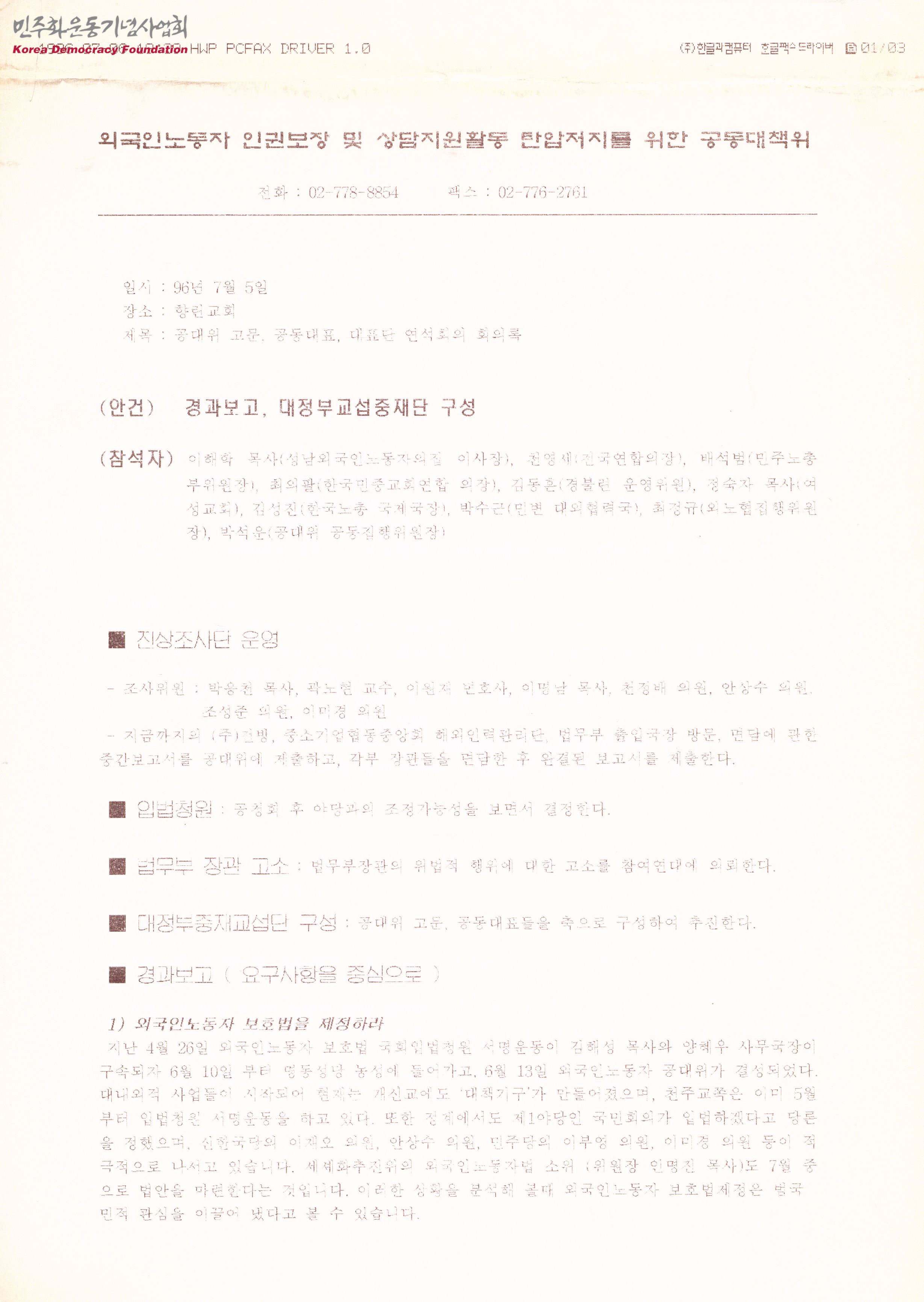 - 외국인노동자인권보장및상담지원활동탄압저지를위한공동대책위