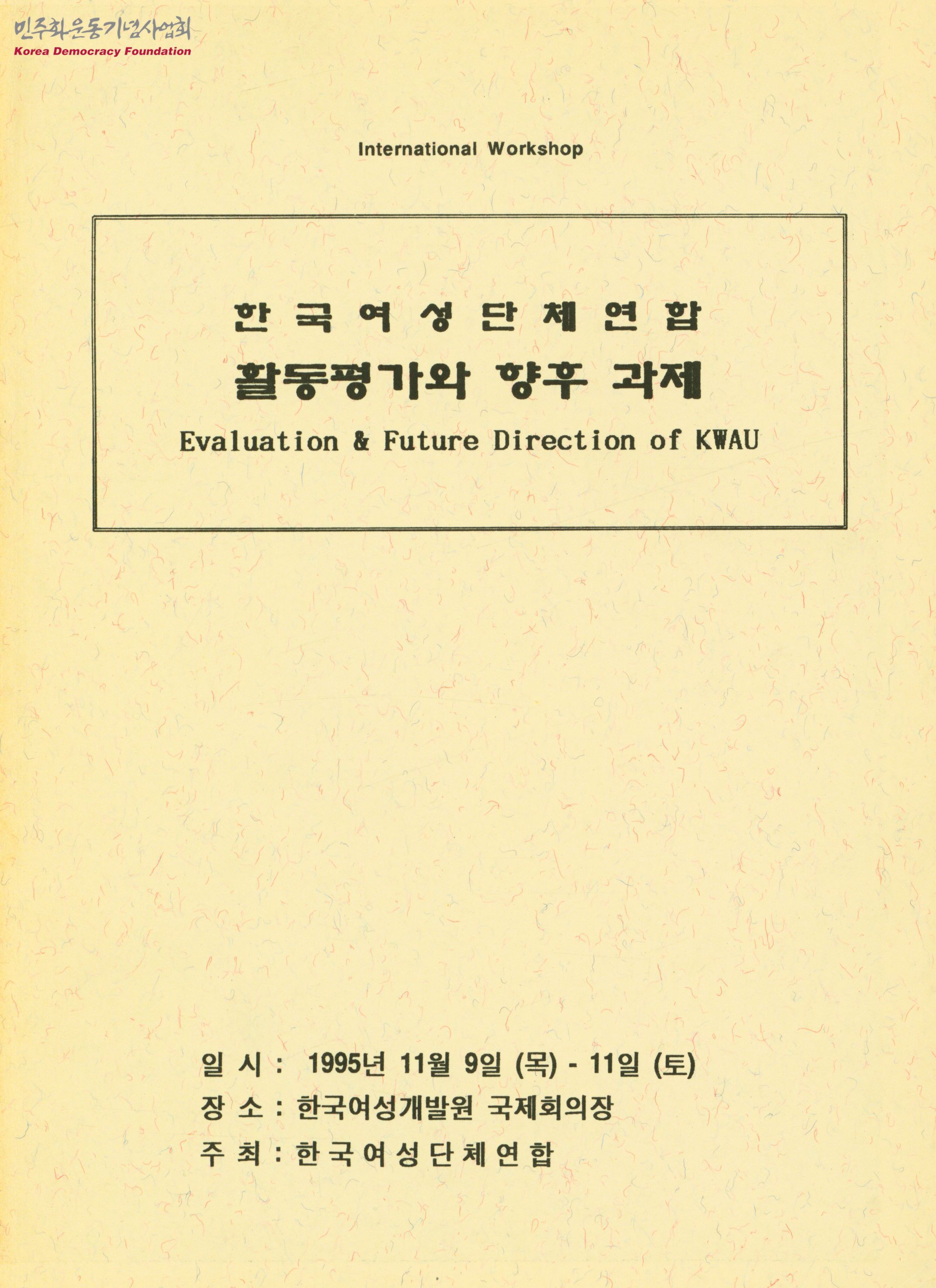 - 프로그램 일정, 한국의 여성상황과 운동과제, 여연의 정치 참여운동, 여연의 성폭력 방지를 위한 특별법 제정운동, 여연의 네트웍 형성과 지도력 육성방안, 한국의 국제연대운동, 참가자 프로필 등의 내용을 포함한 자료집