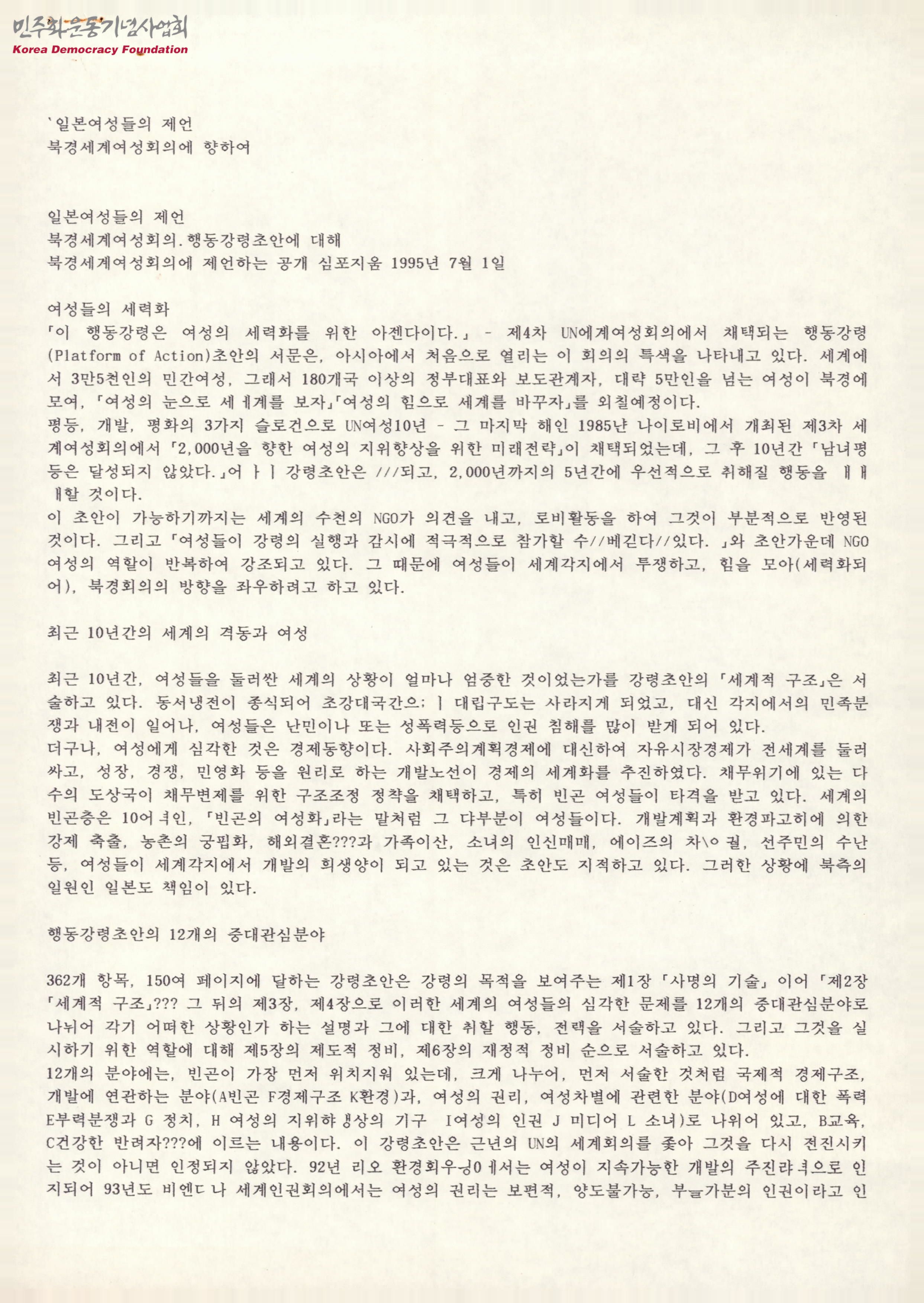 일본여성들의 제언 북경세계여성회의에 향하여