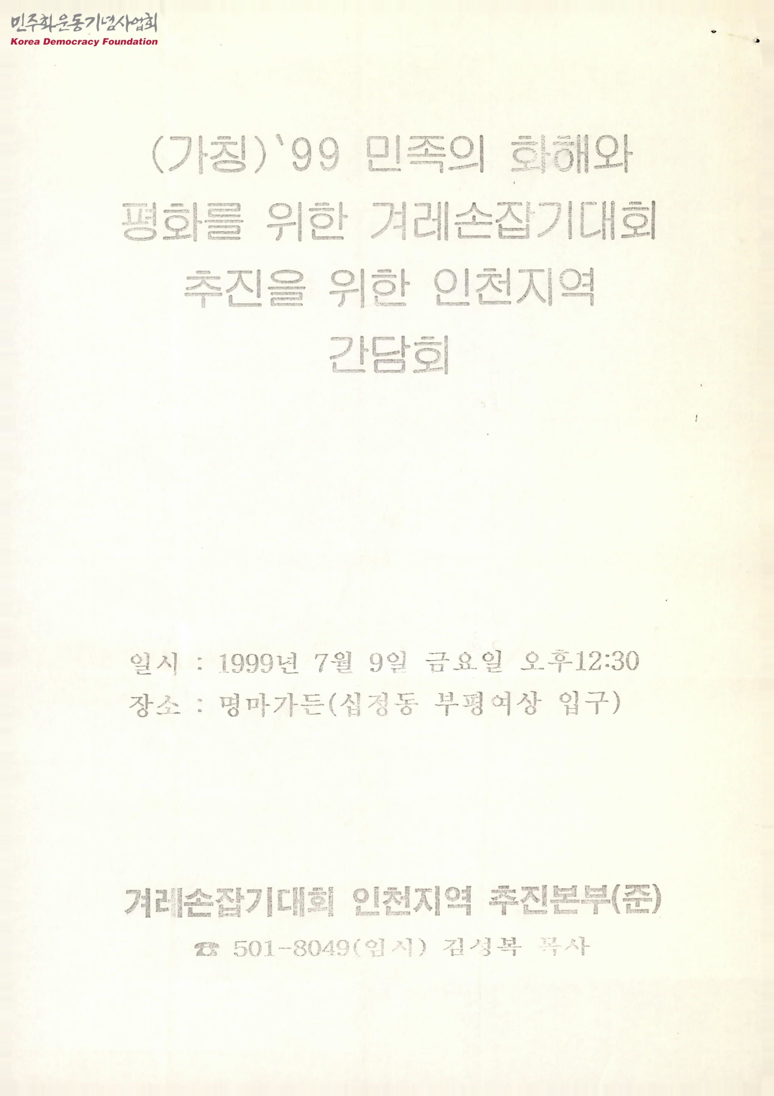 (가칭)`99 민족의 화해와 평화를 위한 겨레손잡기대회 추진을 위한 인천지역 간담회