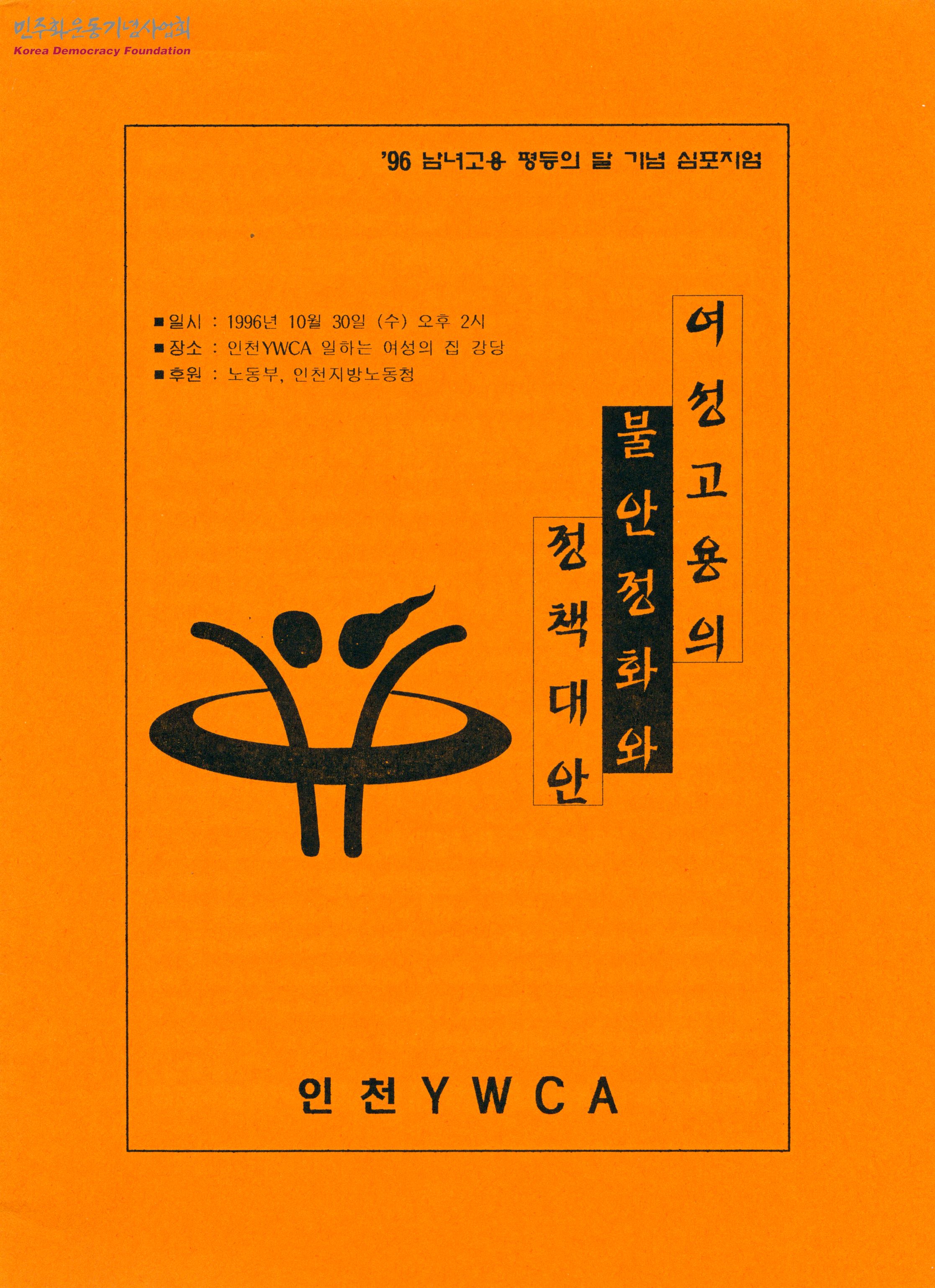 - 96년 남녀고용 평등의 달 기념 심포지엄에서 발표한 것으로 노동유연화 논리와 여성고용의 불안정, 섬유산업의 여성인력 수급실태, 여성고용불안정 현실과 대응, 제도적 측면에서 등의 내용을 포함한 자료집