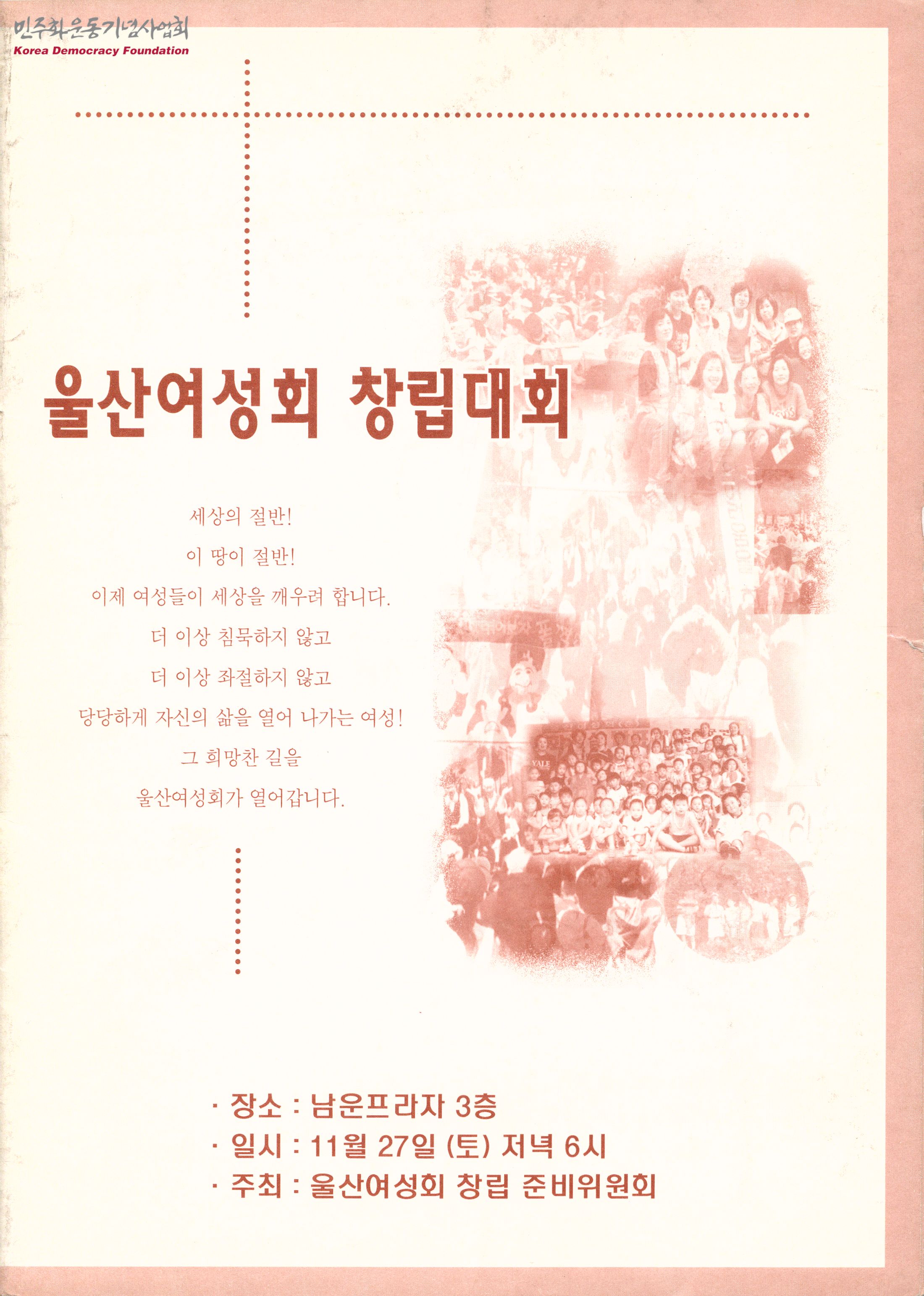 - 울산여성회 경과보고, 울산여성회 창립 선언문, 축하 단체 및 축사 등이 수록된 창립대회 자료