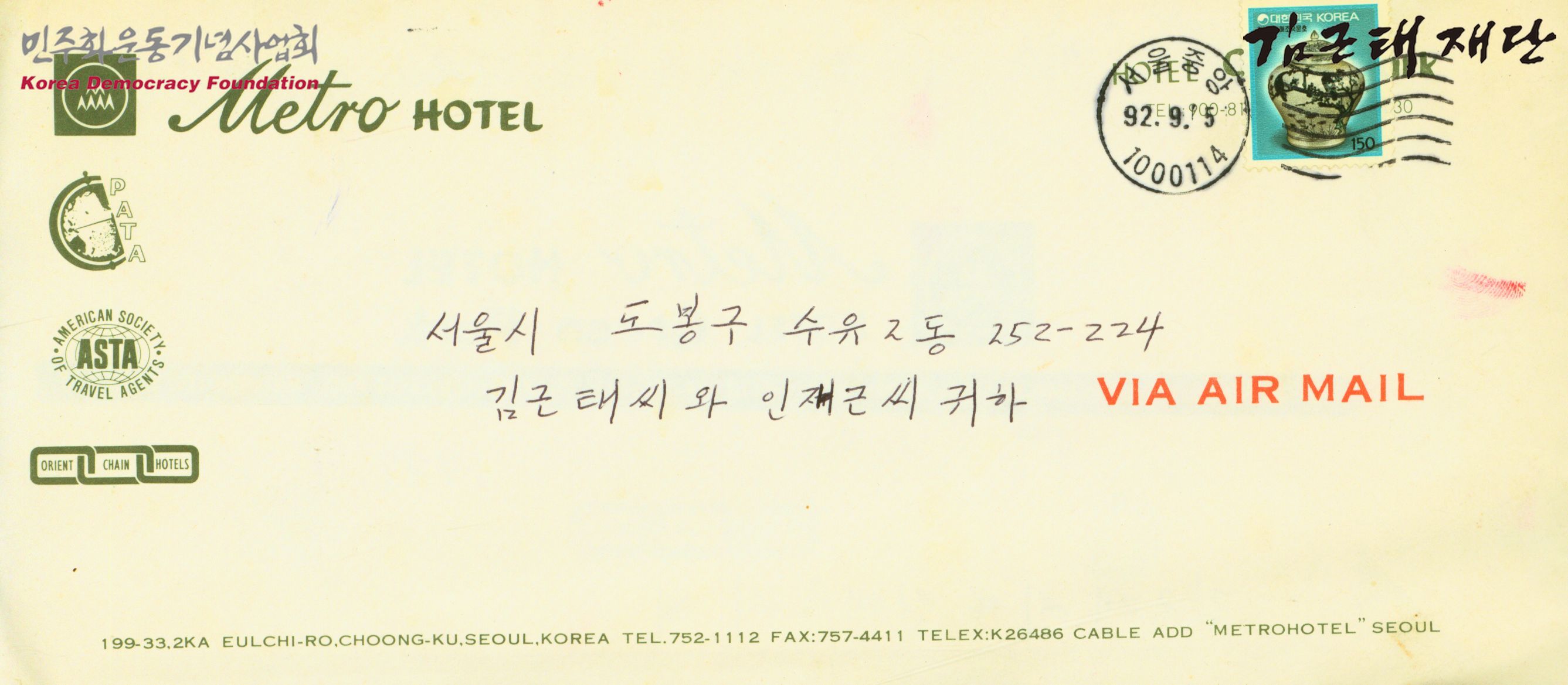 - Ed Baker가 김근태와 인재근에게 보낸 편지로 베이커가 찍은 사진에 대한 이야기 등의 내용을 포함하고 있음