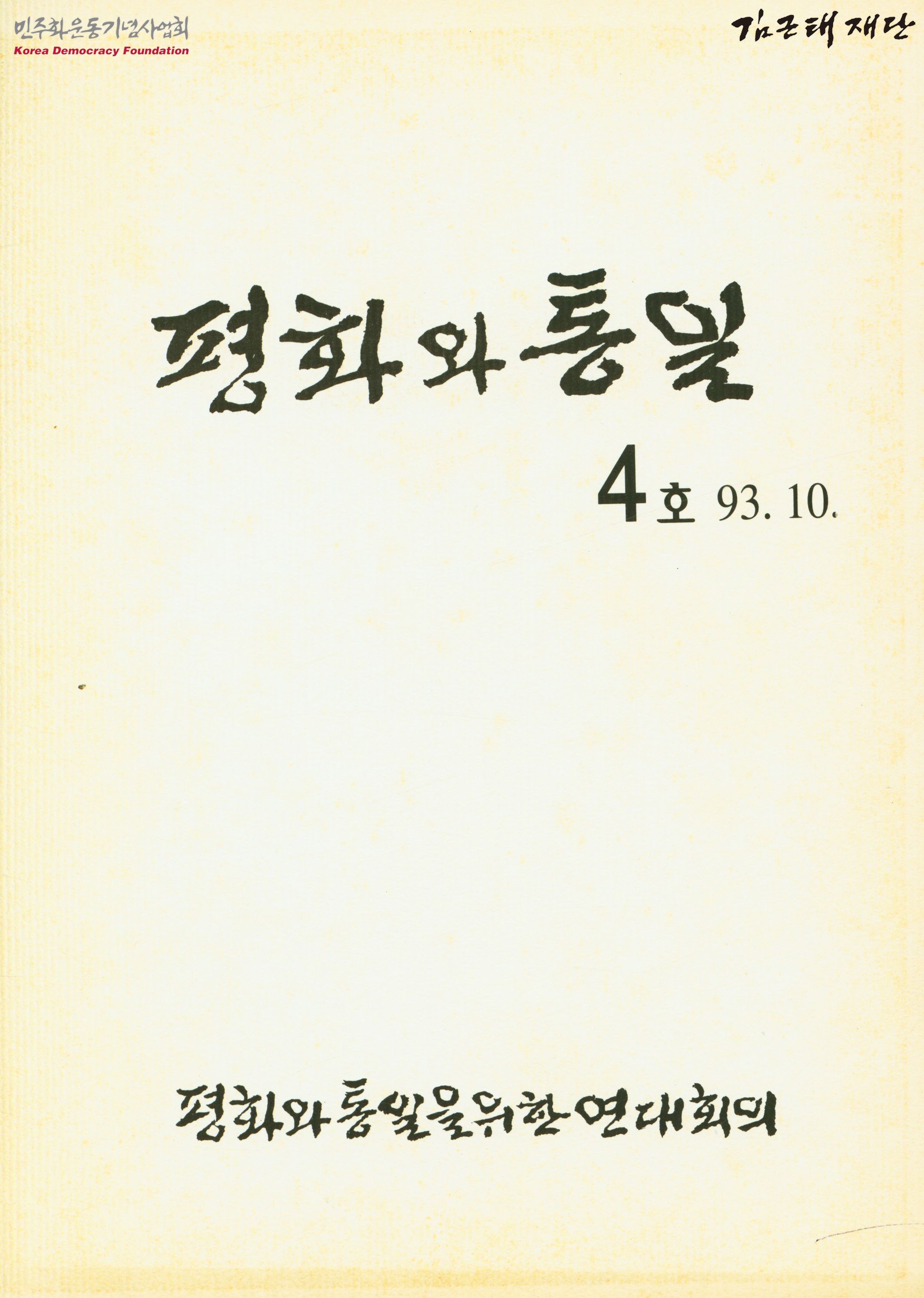 - 평화와 통일 4호로, 다음의 차례로 구성되어 있음 1. 논단 - 민족의 슬기로 핵문제를 해결하자/기세춘 2. 추모 - 김준기의장부인 김영자 여사님 운명하시다 3. 기획논문 - 끝나지 않은 베트남전쟁-고엽제 환자의 현실과 아픔/김상국 4. 서평 - 《사람이 살고 있었네》/김순정 5. 통일시·평화시 - 불사조의 노래/박두진 6. 회원 운영위원 동정 7. 평화·통일운동동향 8. 알림 9. 회원이 만드는 페이지 - 벽신문 10. 제2차 운영위원회 보고서