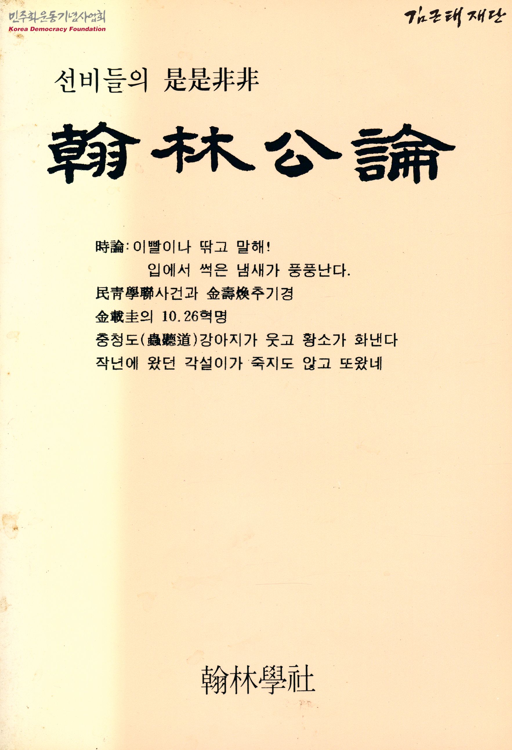 - 옛 선비들의 기개를 오늘날의 선비-지식인들이 본받는데 이바지하고자 펴낸 책으로 차례는 다음과 같음 시론:이빨이나 닦고 말해! 입에서 썩은 냄새가 퐁퐁난다 민청학련 사건과 김수한추기경 김재규의 10.26혁명 충청도 강아지가 웃고 황소가 화낸다 작년에 왔던 각설이가 죽지도 않고 또왔네