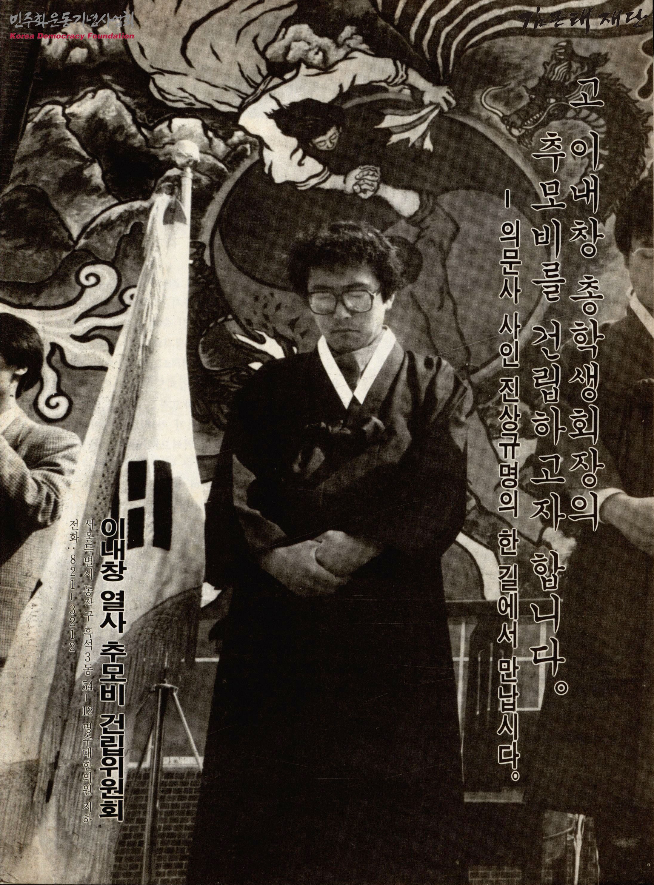 고 이내창 총학생회장의 추모비를 건립하고자 합니다. -의문사 사인 진상규명의 한 길에서 만납시다.