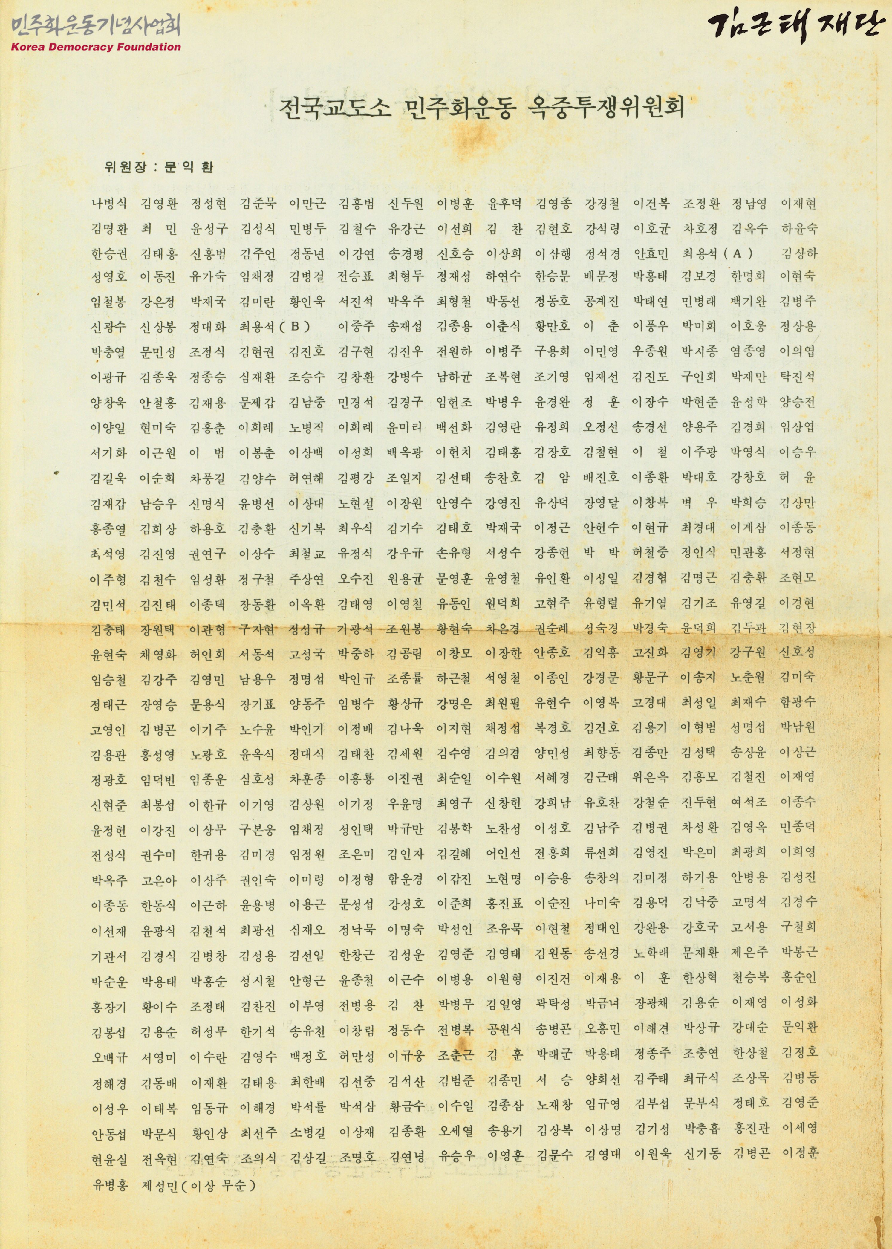 - 현 정치적 상황에 대한 옥중투쟁위원회의 입장과 호헌론을 통한 장기집권 기도에 맞설 것을 호소하는 내용의 입장문으로, 다음의 주장과 옥중투쟁위원회의 명단이 수록되어 있음 1. 호헌으로 장기집권 획책하는 군사독재 타도하자! 1. 용공조작 중단하고, 모든 양심수를 즉각 석방하라! 1. 군사독재 지원하는 미국은 물러가라! 1. 친미국사독재 타도하고 민주정부 수립하자! 1. 광주학살 원흉 전두환·노태우 일당 처단하라! 1. 광주학살 교사범 미제국주의 몰아내자!