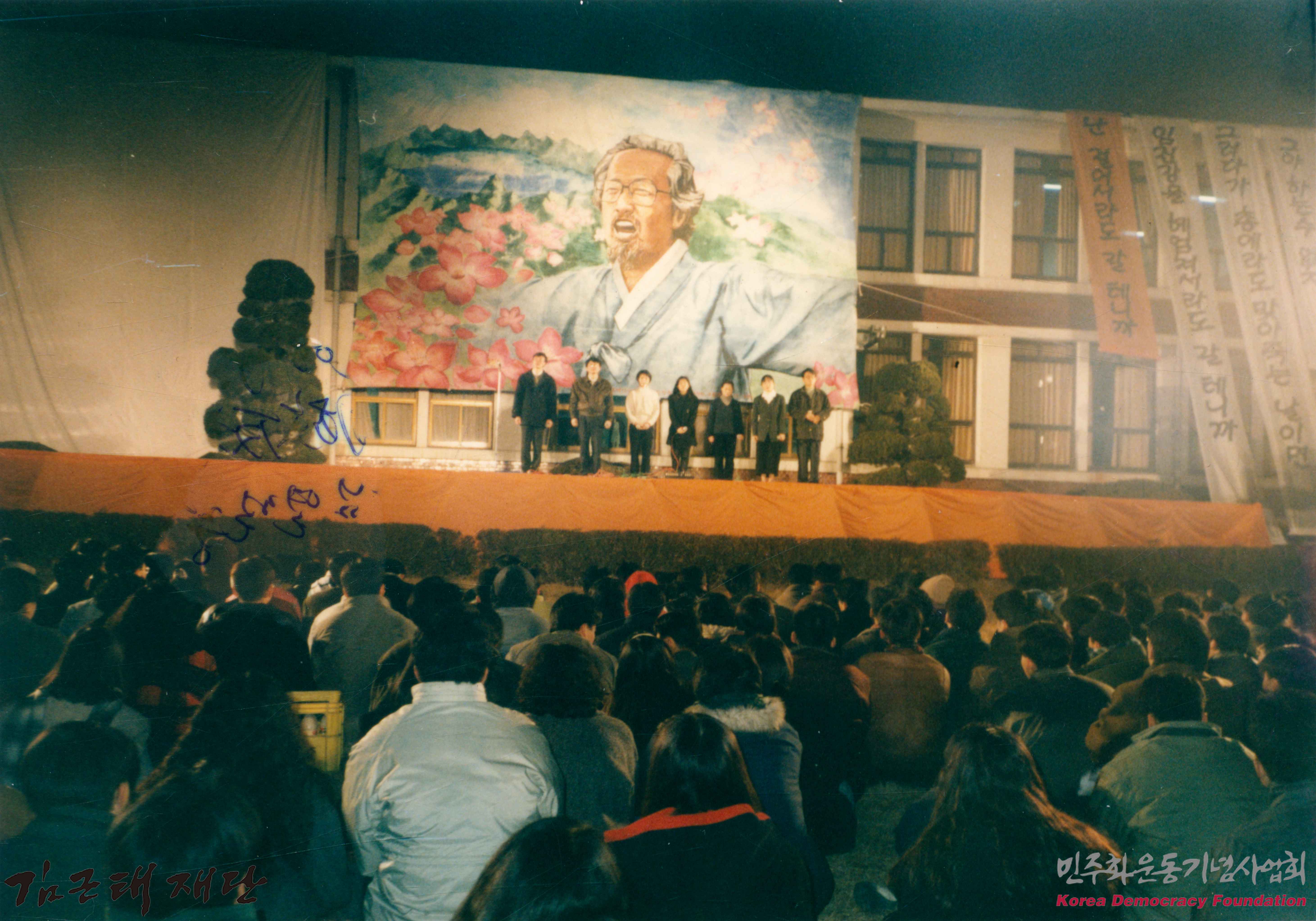 - 한신대학교 교정에서 열린 고 문익환 목사의 출상전야 위령제 사진