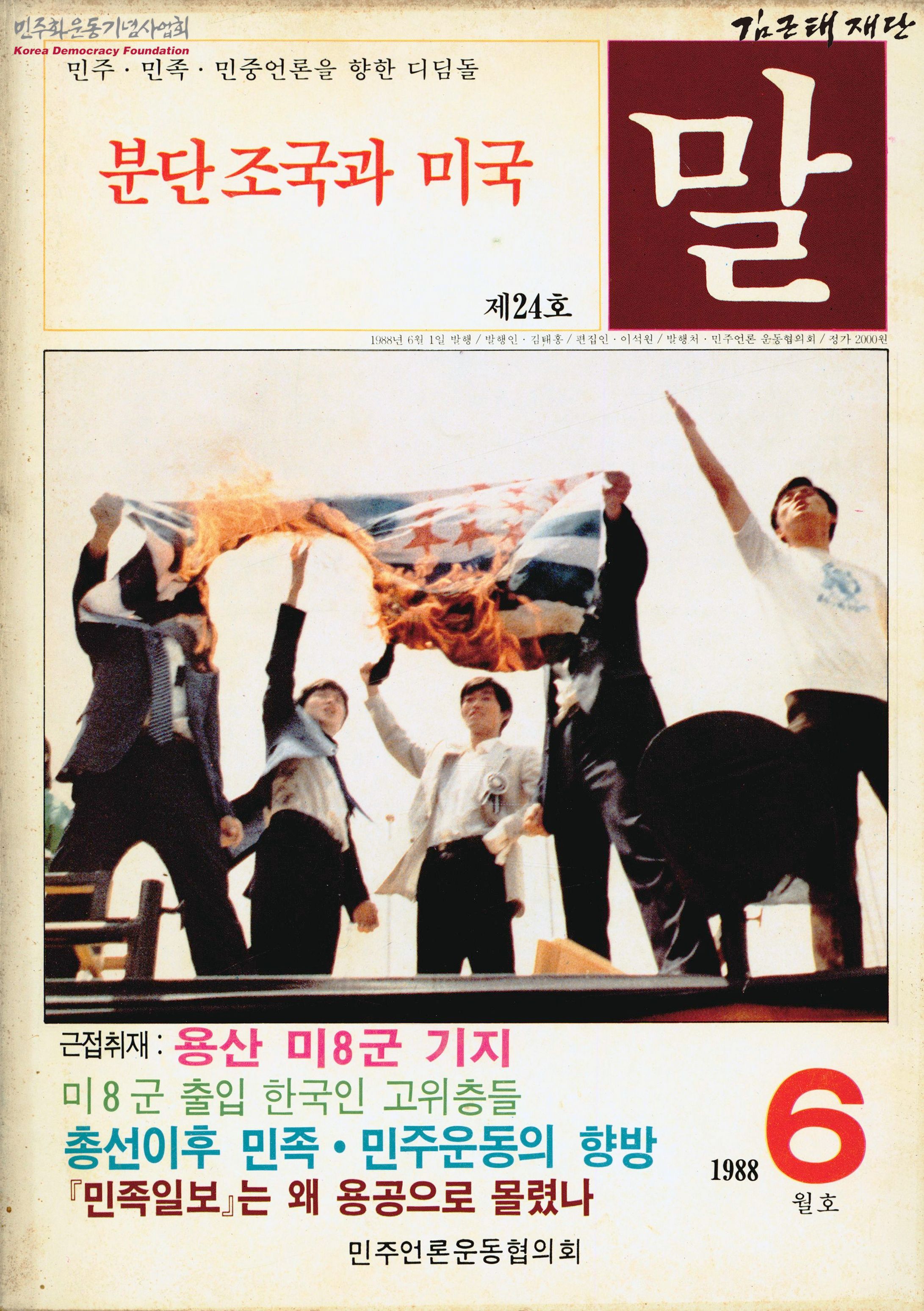 - 말 1988년 6월호로 5월의 죽음, 5월의 부활 민주사상의 철창, 반민주 악법들 재야 입당 의원들, 무엇을 할 것인가-강신옥, 노무현, 양성우, 이상수, 이해찬, 정상용 인터뷰- 6월 항쟁 기념좌담-총선이후 민족·민주운동의 향방 등의 내용을 포함하고 있음