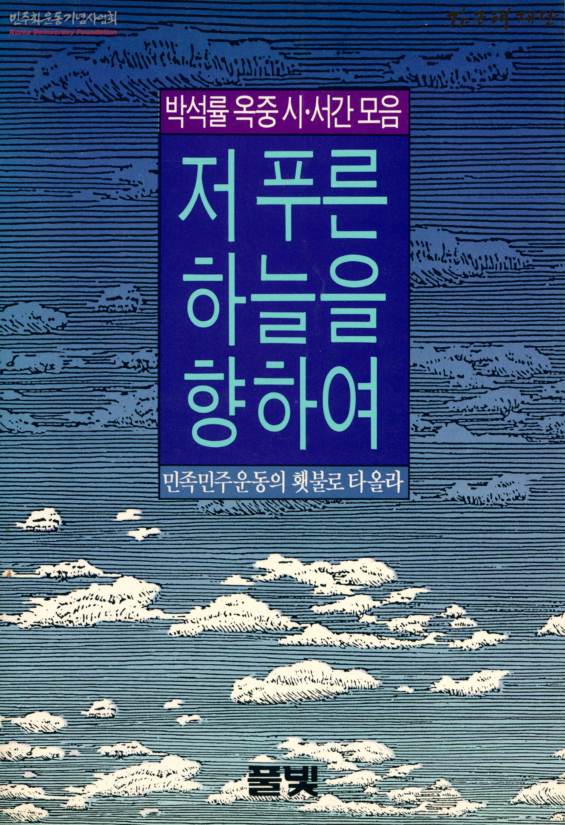 - 박석률의 옥중 시·서간을 모아 책으로 엮은 것으로 목차는 다음과 같음 권두시-문익환 동문헌시-김명식 박석률 동지의 삶과 사회적 실천을 돌이켜보며-김남주 제1부 옥중시모음 저 푸른 하늘을 향하여 1. 광주 시민 여러분, 비상입니다 2. 예순 살의 총각 3. 타는 그리움으로 4. 제국의 거리 제2부 옥중서간모음 - 꽃도 십자가도 없는 무덤에 통곡하며 삽질했던 나의 형제들 1. 남도 길을 따라 헤어지면서 2. 무등의 함성이 영산강의 함성과 만나고 제3부 수상·자료