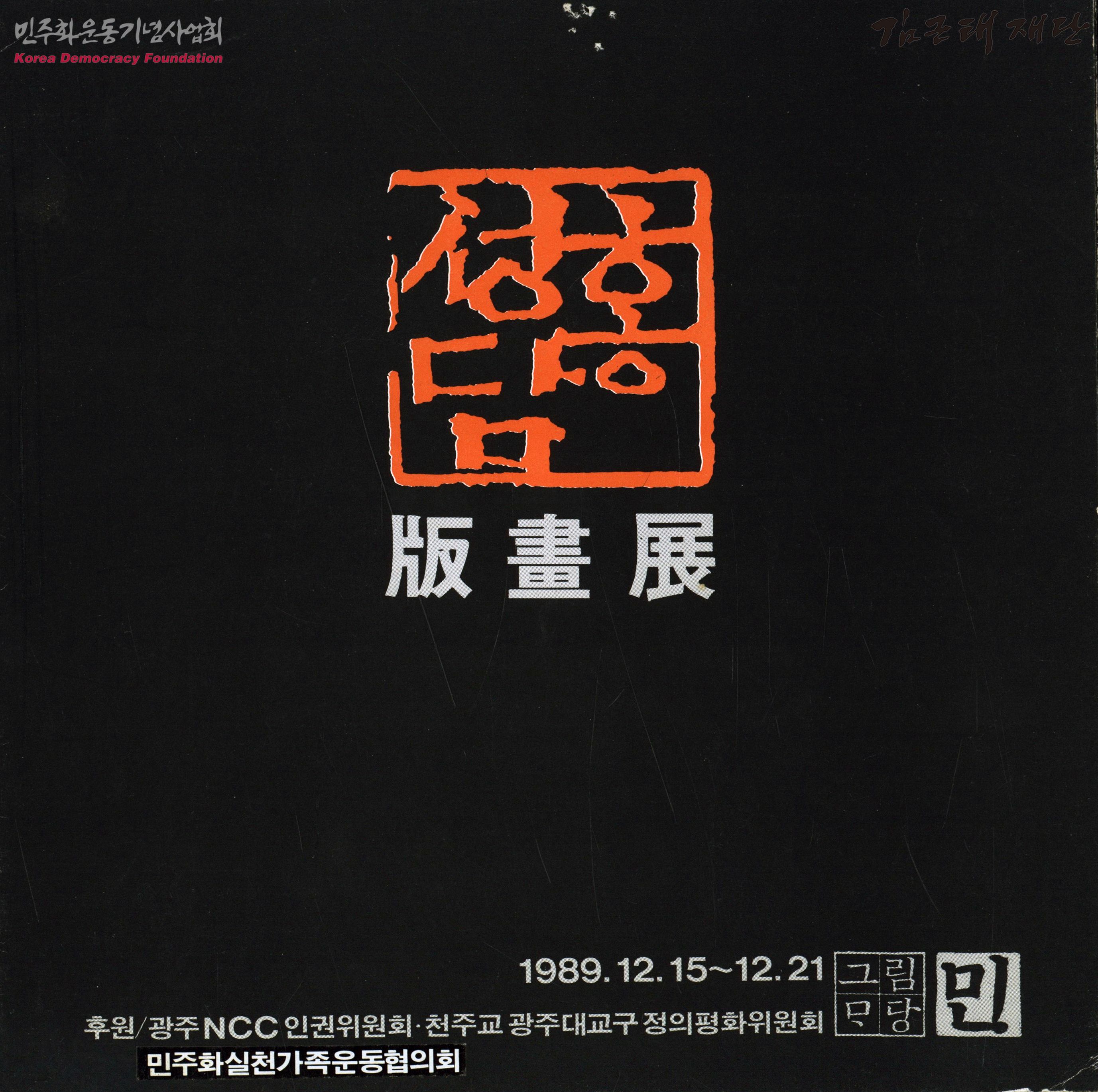 - 광주NCC인권위원회, 천주교 광주대교구 정의평화위원회, 민주화실천가족운동협의회의 후원으로 그림마당 민에서 열린 홍성담의 판화전의 홍보 리플릿