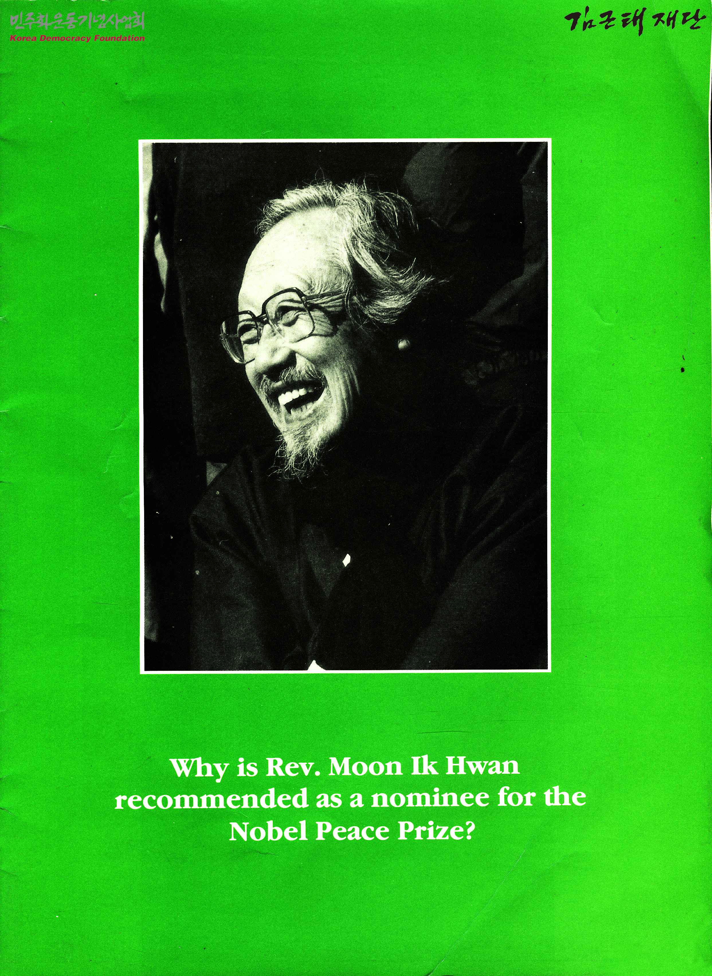 - 문익환 목사를 노벨 평화상 수상자로 추천하는 내용이 포함된 책자로, 문익환의 일대기 및 남북통일을 위해 활동한 내용이 수록되어있음