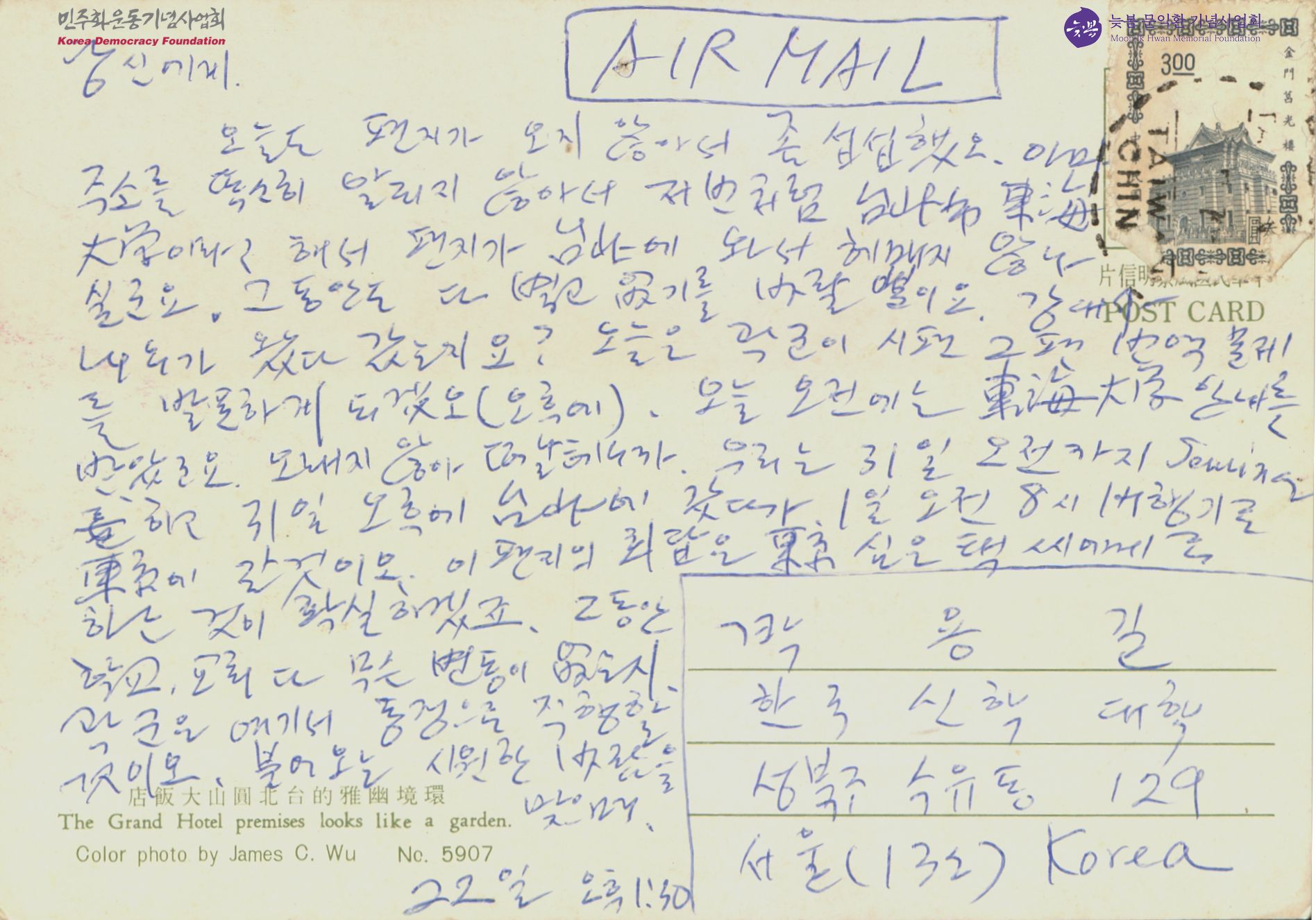 [문익환 목사가 박용길 장로에게 보내는 엽서]